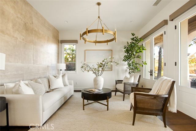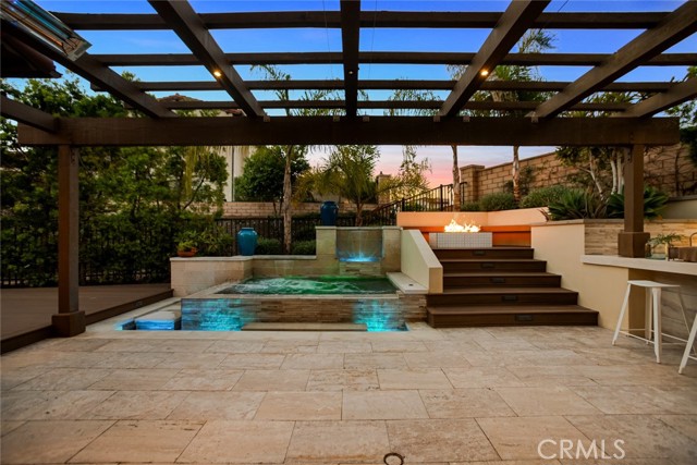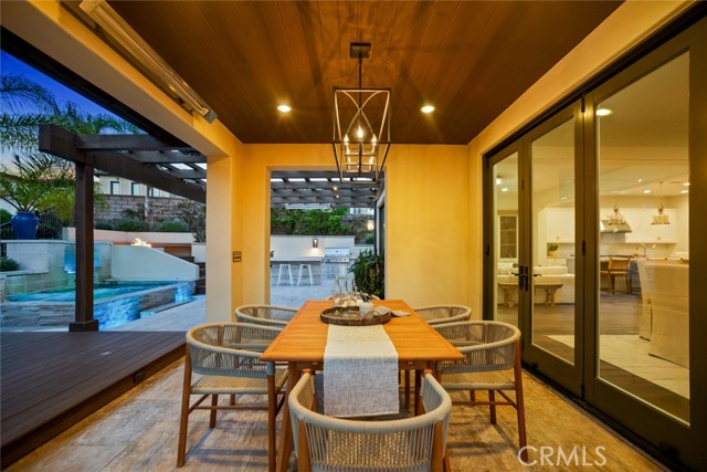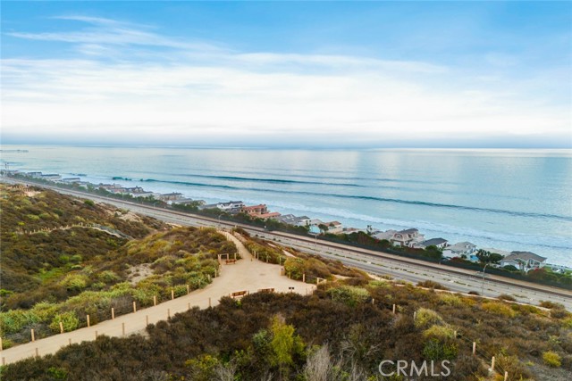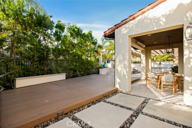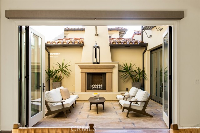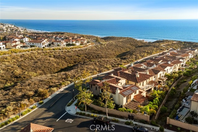 Life by the ocean is elevated to an impressive new level of luxury at this exquisitely appointed Azure home at Sea Summit in San Clemente. Beautiful ocean and canyon views are enjoyed from both levels of the residence and its welcoming front patio with built-in seating and an open-air fireplace. Romantic architecture with stone accents and dramatic archways is embellished with drought-tolerant native landscaping and custom hardscaping on grounds that extend approximately 9,228 square feet. The sought-after corner homesite reveals a side patio with built-in seating, a private interior courtyard with fireplace, a sport court, and a resort-style backyard with infinity-edge spa, elevated deck with fire pit, a heated loggia with wood-plank ceiling, and a custom kitchen with grill, sink, refrigerator and bar. Interior spaces are sublime, with a soft-contemporary aesthetic that complements open living areas, a double-height foyer with arched entry door, four ensuite bedrooms, a loft and five baths. Approximately 4,244 square feet, the comfortably sized design showcases a formal living room with two sets of French doors opening to the front patio, a formal dining room with walls of glass doors leading to the courtyard and backyard, and a main-level guest suite with backyard access. The dining room flows effortlessly to the family room, where a fireplace, surround sound, and glass doors opening to the loggia are displayed. The kitchen is a masterpiece of fashion and function, blending top-of-the-line Wolf and Sub-Zero appliances with on-trend stone countertops, Shaker cabinetry, a large island with seating, butler's pantry, stainless steel apron sink, and designer tile backsplash. Numerous windows illuminate the home with natural light that accentuates wood flooring, premium carpet, custom paint and wall treatments, sophisticated LED lighting fixtures, ceiling fans, built-in cabinetry throughout, and Juliet balconies in many rooms. Enjoy romantic ocean views from the deck off a primary suite that hosts an oversized walk-in closet with built-ins, a soaking tub and spacious shower. Solar power, an expansive laundry room and a two-car garage are also featured. Sea Summit is nestled along oceanfront bluffs and presents scenic trails, beach access, preserved canyons and open space, five community parks, and a lux clubhouse with pool, spa, gym and lounge areas. Restaurants and shops are moments from home at Outlets at San Clemente, and award-winning schools are nearby.