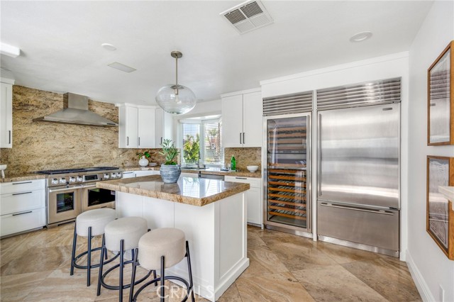 Appliances: 6 Burner Stove, Built In Range, Convection Oven, Dishwasher, Double Oven, Freezer, Garbage Disposal, Gas Range, Gas Water Heater, Ice Maker, Instant Hot Water, Microwave, Range/Stove Hood, Refrigerator, Self Cleaning Oven, Water Line to Refrigerator
