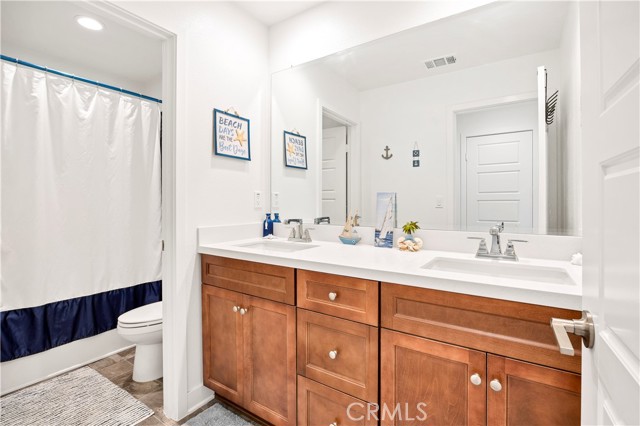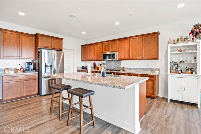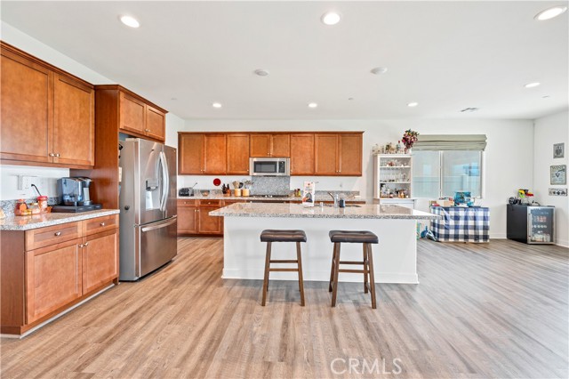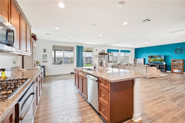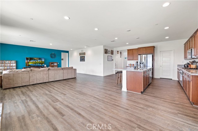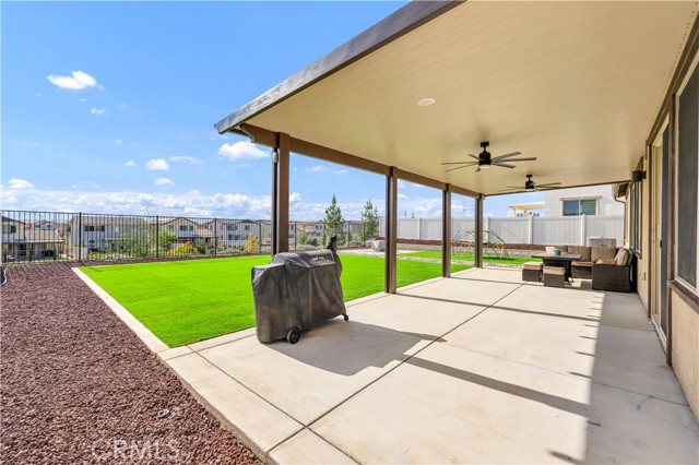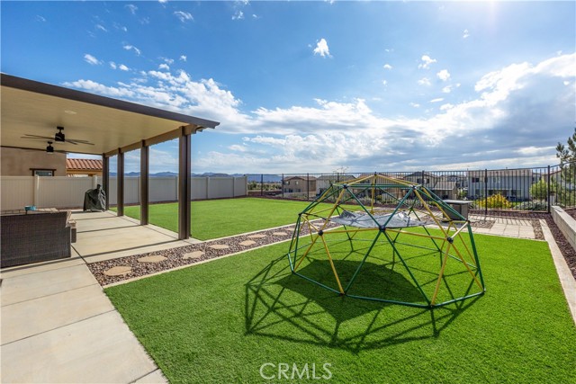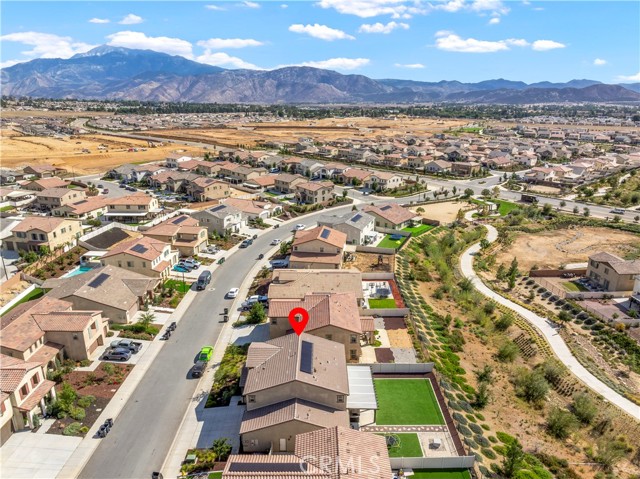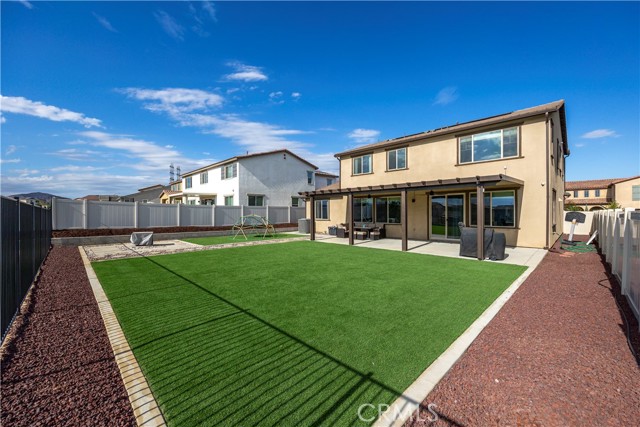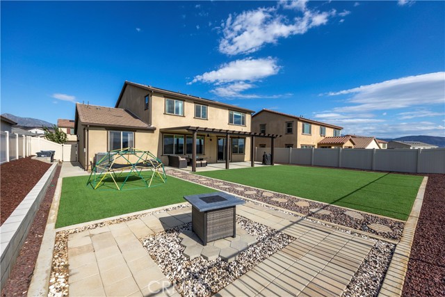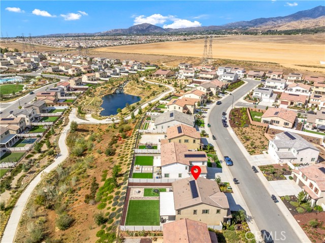 Welcome to 2061 Horizon Drive, a stunning 4 Bedroom, 2 and Three-Quarter Bathroom property located in the desirable Master-Planned Community of Atwell. Built in 2022, this home offers 2,844 sq. ft. of living space, privacy, breathtaking views and a peaceful river running along the back that you'll love coming home too! As you step inside, you immediately notice the tall 9-Foot ceilings and open-concept floorplan, very spacious and modern throughout. The heart of the home is the chef's kitchen, complete with a large kitchen island, soft-close cabinetry, and abundance of storage. The kitchen flows seamlessly into the expansive living room, perfect for everyday living and entertaining with family and friends. As you step outdoors, your backyard retreat awaits you! This beautifully designed, low maintenance backyard features artificial turf, a raised garden bed, room for a play area, a large dura-cool alumawood patio cover with ceiling fans, a cozy fire pit, and the peaceful sounds of water flowing through a man-made river that runs along the backside of the home, through the center of the Atwell community. It's the perfect setting to unwind or host family and friends. Notable Features & Upgrades include: Paid-Off Solar (7 panels), LVP Flooring, Tankless Water Heater, Hardwired Security System Atwell Community Lifestyle & Surrounding Areas: Life at Atwell means access to incredible amenities designed for recreation, connection, and relaxation. The community when built out will feature five recreation centers, each with its own mix of amenities. Every center will include a pool, tot lot, and outdoor dining spaces, creating the perfect gathering place for neighbors and friends. Walking trails and sports parks provide even more opportunities to enjoy the outdoors. Living at Atwell means you're within easy reach of the natural beauty of Joshua Tree National Park, Idyllwild, Big Bear, Palm Springs, and Redlands, ideal for day trips, hikes, or a night out on the town. Whether you're soaking up the sun by the pool, enjoying a picnic, or watching the kids play, Atwell offers the perfect backdrop for lasting memories.