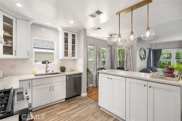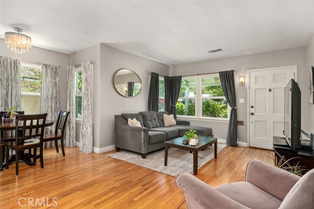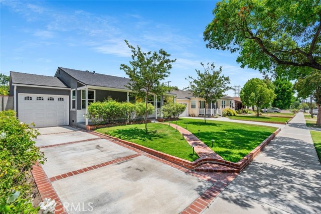 Welcome to this beautifully maintained 3-bedroom, 2-bathroom home where classic charm meets modern updates. Nestled behind blooming flowers and a warmly lit pathway, this home offers fantastic curb appeal and a welcoming front porch — perfect for morning coffee or evening relaxation. Inside, enjoy a bright, open layout featuring hardwood floors, a cozy living room, and a spacious family room with a wood-burning fireplace and skylight. The remodeled kitchen is a chef's dream with stainless steel appliances, a breakfast bar, and stylish finishes ideal for everyday living and entertaining. A tastefully updated ¾ bath adds modern convenience. Step outside to your private backyard retreat — lush landscaping, a covered patio, and space for al fresco dining create the perfect setting for California living. Additional features include a newer paved driveway, newer garage door and motor, dual-pane windows, sliding glass doors, skylight, new sewer line and automatic pathway lighting. Located just minutes from the Chandler Bike Path, local cafes, shops, bakeries, and major studios like Warner Bros. and Universal. This is a must-see Burbank gem.
