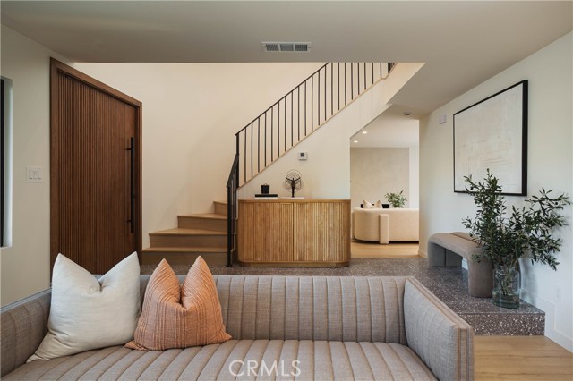 Welcome to this masterfully reimagined residence in the prestigious Upper SeaCliff neighborhood, where mid-century design meets modern coastal luxury less than one mile from Surf City's iconic beaches. Nestled on a quiet cul-de-sac and within walking distance of the Huntington Beach Wetlands, local parks, the HB Urban Forest, and top-rated schools — and just minutes from The Huntington Club — this home offers an exceptional lifestyle in one of Orange County's most desirable coastal enclaves. Recently expanded and meticulously renovated with indoor-outdoor entertaining in mind, this four-bedroom, two and a half-bathroom home features an open, light-filled floor plan complemented by high-end finishes and sophisticated designer touches throughout. Upon entry, you're welcomed by a striking modern-line pivot door, setting the tone for the refined interiors. The kitchen is a chef's dream, showcasing Taj Mahal quartz countertops, Thermador appliances, and an ActiveWall awning-style passthrough window that opens to the beautifully landscaped backyard. A spacious living area flows effortlessly outdoors through WinDor bifold doors that lead to a firepit lounge — ideal for entertaining or relaxing year-round. The primary suite offers a spa-inspired wet room with soaking tub, dual vanities, and serene, resort-style finishes. One secondary bedroom includes a private balcony with neighborhood views — ideal for enjoying morning light and coastal breezes. Additional features include luxury wood-look flooring, roman clay fireplaces, black-framed Milgard windows, recessed lighting, new plumbing fixtures, updated interior doors, and a private elevator. The finished garage, upgraded with epoxy floors and new doors, offers flexible space for storage or hobbies. System upgrades include a new furnace, AC, water heater, and sleek metal roof. The oversized lot is fully landscaped with new concrete, sod, mature trees, flagstone entry, and dramatic lighting for standout curb appeal. With four bedrooms, multiple living areas, and expansive outdoor space, this turnkey home delivers the best of coastal Huntington Beach living in one of Orange County's most desirable neighborhoods.