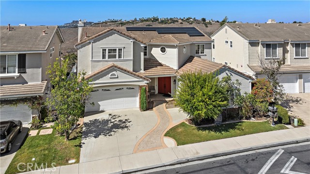 Stunning 4-Bedroom Home with Ocean and Catalina Island Views. Perched high in the hills of San Clemente in the gated Highland Light community, this beautifully upgraded 4-bedroom, 3.5-bath home offers sweeping ocean views and incredible sunsets. The home features a bright, open layout with all four bedrooms thoughtfully arranged — three upstairs and one conveniently located on the main floor. With two full bathrooms on the second level and both a full and half bath downstairs, there's plenty of space for family and guests. As you enter, you'll notice the high-quality ceramic tile flooring and a custom wrought iron staircase that sets the tone for the rest of the home. The kitchen is designed for both function and style, with quartz countertops, a large island, and modern finishes — ideal for cooking, entertaining, or casual dining. Step outside to a completely remodeled backyard built for hosting. It includes a built-in BBQ, a sleek firepit, and plenty of space to relax while enjoying panoramic ocean views. Recent upgrades make this home as efficient as it is beautiful, including Tesla solar panels and two Powerwalls installed in 2022. The entire home was also re-piped in 2021, providing long-term peace of mind. Located just minutes from hiking trails, parks, popular restaurants, San Clemente's beaches and pier, and Dana Point Harbor, this home offers the best of coastal living in a secure and private community.