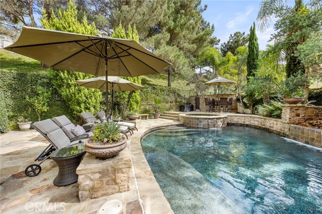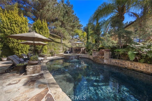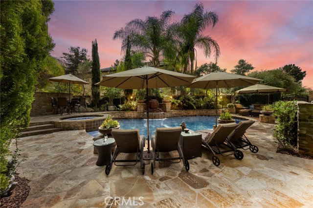 Nestled at the end of a serene cul de sac, this exquisite residence epitomizes luxury living. An absolutely breathtaking Italian utopia awaits complete with a jaw dropping resort style backyard. Spectacular S&S estate home in highly desirable East Lake Village, the Pointe community! Boasting an expansive 4,261 SF of refined living space with 5 bedrooms and 5 baths, this residence perfectly blends luxury, comfort, and functionality. Soaring two-story ceilings grace the formal living and dining rooms, creating a dramatic and welcoming ambiance ideal for elegant entertaining and lots of natural light. The perfect chef's kitchen — an expansive granite showpiece featuring abundant counter space, a full suite of high-end stainless appliances, a large center island complete with convenient prep sink and a built-out wine bar perfect for hosting in style. The adjacent family room offers warmth and comfort with a cozy stack stone fireplace and a wall of windows that frame the outdoor entertainment. Downstairs, you'll find a highly desirable large en-suite bedroom with large walk-in closet, ideal for guests or in-laws. A stylish powder room and an oversized laundry room with extensive cabinetry round out the main floor features. Upstairs, the luxurious primary suite is a true retreat. Unwind in your private sitting area or indulge in the spa-inspired bath, featuring dual vanities, sumptuous soaking tub, separate walk-in shower, and two generously sized walk-in closets. Three additional oversized bedrooms complete the upper level, one with its own en-suite, and two that share a large dual vanity bathroom. One bedroom is bonus room sized, offering endless possibilities as a game room, additional junior guest suite, or media space. Step outside into your personal oasis and a backyard that especially at night is going to seal the deal! It is a haven for year-round outdoor living and entertainment with a professionally landscaped design, hand selected plants and stone, resort style pool with custom water feature, full outdoor kitchen with Lynx grill, refrigeration and raised bar seating for 6, with fire table, huge outdoor covered patio with custom built water feature plus fire ring and energetic putting green. All set within a community rich in resort-style amenities including multiple pools, lake, fishing, boating, scenic walking trails, clubhouse, gym and year-round activities. Welcome home to East Lake Village — where lifestyle, luxury, and location meet.