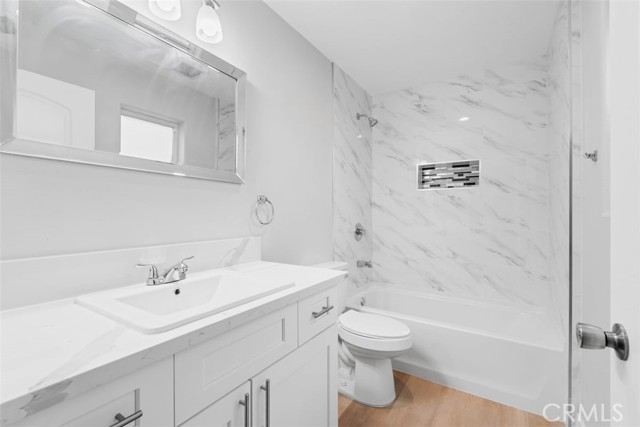 Beautiful Turnkey 4 Bedroom 2 Bath House with Attached 2 Car Garage in San Bernardino. With Direct home access. Exterior and Interior Have Been Completely Remodeled. Exterior Features New Landscaping, New Windows, New Paint, New Garage Door, and Freshly Landscaped Front Yard. Interior features New Paint, New Baseboards, New Panel Doors, New Light Fixtures, Ceiling Fans, and SPC Wood Look Vinyl Flooring Throughout. There are 3 Good Sized Bedrooms with Good Closet Space. There is a Master Bedroom with it's own Full Bathroom and a Walk-In Closet. Bathrooms have been Remodeled with New Tiled Shower / Tub, Toilet, Sink, Fixtures, and Vanity with Quartz Counter Top. Living Room Features Plenty of Space for All your Furniture. Kitchen is Remodeled with New Cabinets, Crown Molding, New Quartz Counter Tops, New Sink, New Range Hood, New Fixtures, Free Standing Stove Oven, Garbage Disposal, and New Dishwasher. House features Central Heat and A/C. House has a Back Yard. Not too far from the 215, 10, and 210 Freeways. There is Shopping and some Dining Nearby. Call Today to Take a Look At this Great Property!