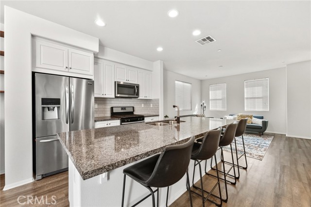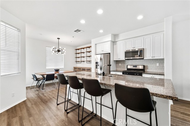 Welcome to this beautifully upgraded 3-bedroom, 2.5-bath corner-unit condo in Upland, built in 2017. This light-filled home features an open floor plan with luxury flooring, dual-pane windows, recessed lighting, and central heat and air. The modern kitchen includes granite countertops, a designer backsplash, and a large center island — ideal for cooking and entertaining. The spacious primary suite offers a private retreat, and the attached 2-car garage adds everyday convenience. Just outside is a playground, with access to resort-style amenities including a pool, clubhouse, and lush landscaping. Ideally located near parks, schools, shopping, and freeways, this move-in ready home combines comfort, style, and location. The home as been Freshly Painted inside and Appliances included.