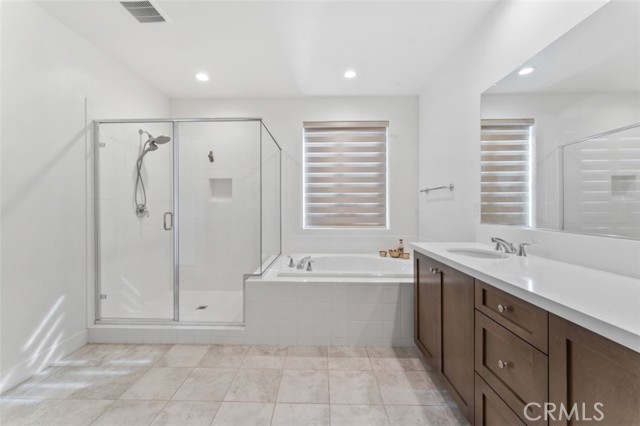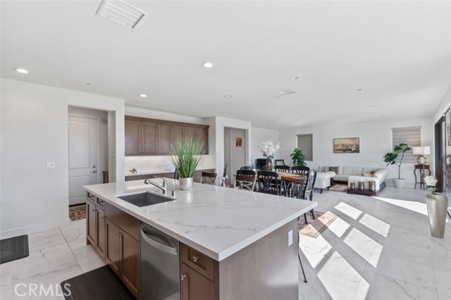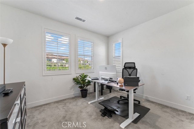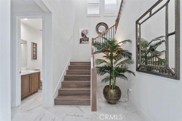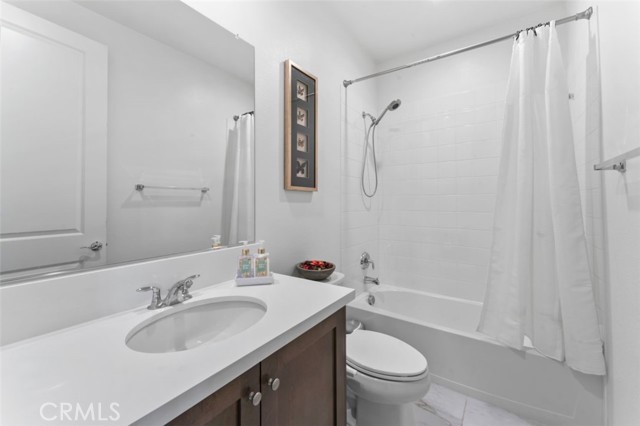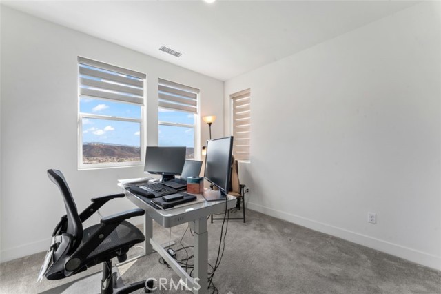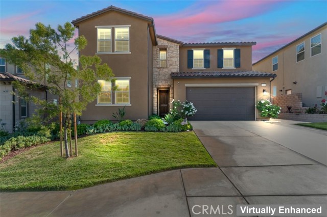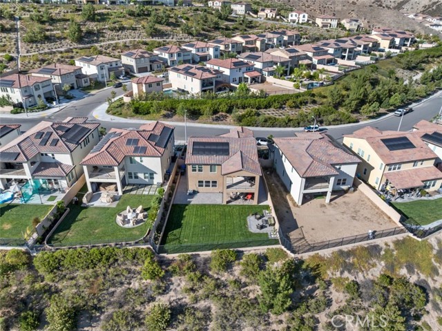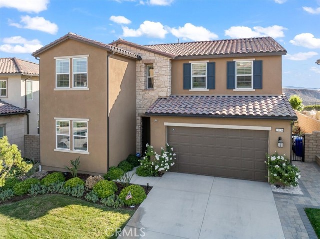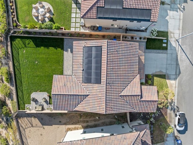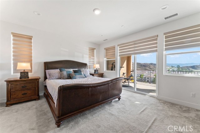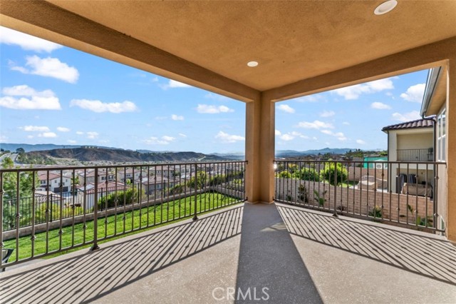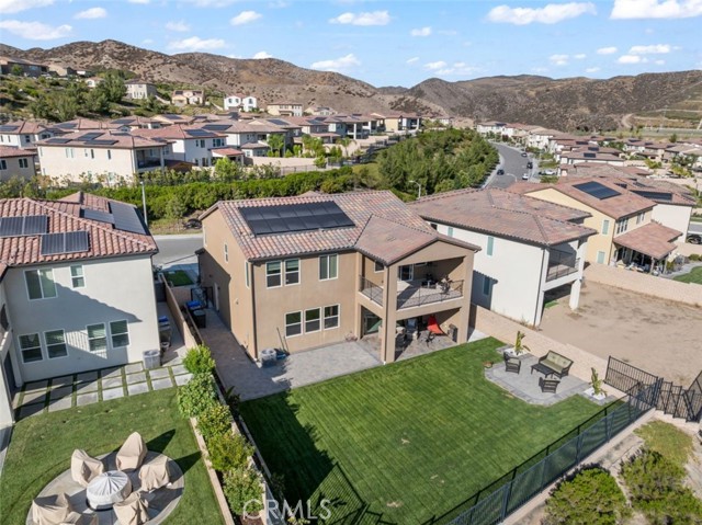 This beautifully upgraded view home checks all the boxes, Owned and Paid Solar, No Mello Roos, and loaded with standout features throughout. No neighbors across the street. From the moment you enter, you'll appreciate the open layout, elegant flooring, and stylish touches like recessed lighting and wrought iron stair rails. The spacious kitchen is a dream with quartz countertops, a center island, and stainless steel appliances, flowing seamlessly into the large family room and out to the California room with tile flooring, perfect for entertaining. Enjoy outdoor living in the generous backyard with multiple sitting areas. Downstairs offers a full bedroom and bathroom, ideal for guests or multigenerational living. Upstairs, a large loft offers flexible living space, and the primary suite is a retreat of its own with a private balcony featuring stunning views and a spa-inspired bathroom to start or end your day in luxury. Additional highlights include wood shutters, dual golden zebra shades that preserve views, and so much more. This is a home you won't want to miss!