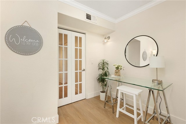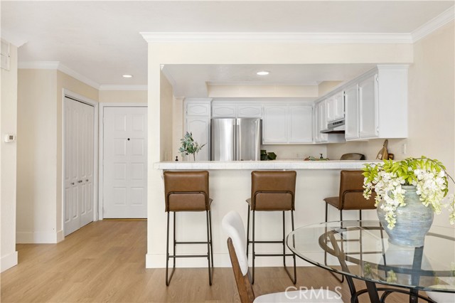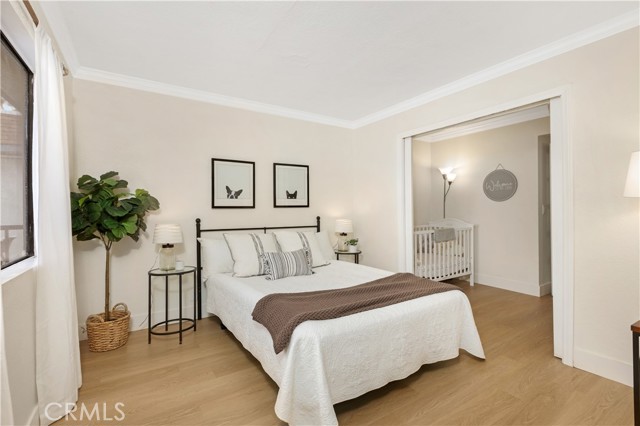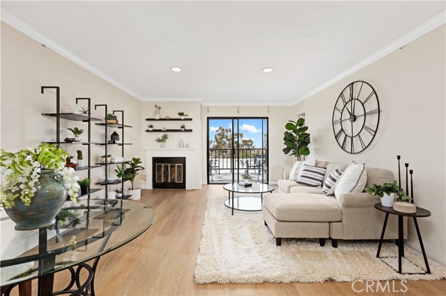Do not miss the opportunity to own this elegantly designed one-bedroom condominium, ideally situated in the highly desirable Signal Hill community. This residence offers sweeping city light vistas and captivating panoramic views from its private balcony. The thoughtfully designed open-concept floor plan welcomes you with newly installed designer plank flooring that flows seamlessly throughout the home. The kitchen showcases recessed lighting, pristine white cabinetry, freshly glazed countertops, and a convenient breakfast bar that opens gracefully to the dining area and spacious living room — accented by a cozy fireplace and direct balcony access. Step outside to experience breathtaking views that extend from the glittering cityscape to, on clear days, the iconic Hollywood Sign. The expansive primary bedroom features a versatile bonus room separated by sliding paned doors, ideal for use as a nursery, home office, or intimate retreat. Both the kitchen and bathroom have been newly glazed, providing a polished, like-new appearance. Additional conveniences include a private gated garage, reserved underground parking with elevator access directly to the unit, and a second reserved parking space. Upgrades include a newer air conditioning unit, water heater, and in-unit washer and dryer. Residents also enjoy access to an array of community amenities, including a spa, clubhouse, ping-pong room, fitness center, recreation area, bicycle storage room, and ample guest parking. This exceptional property is conveniently located near premier restaurants, shopping, theaters, and major freeways. This remarkable opportunity will not last long.