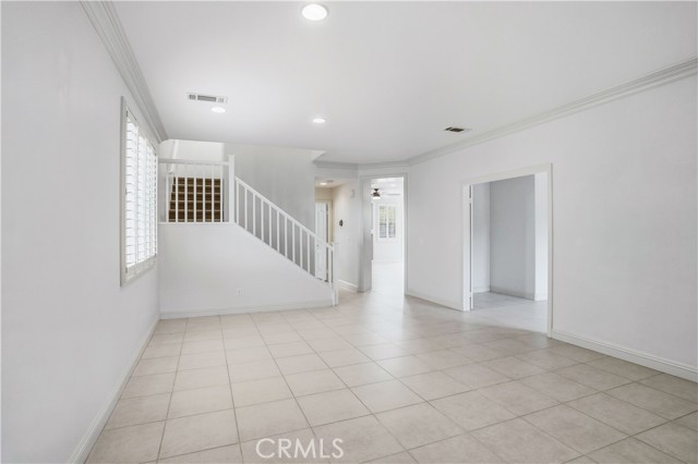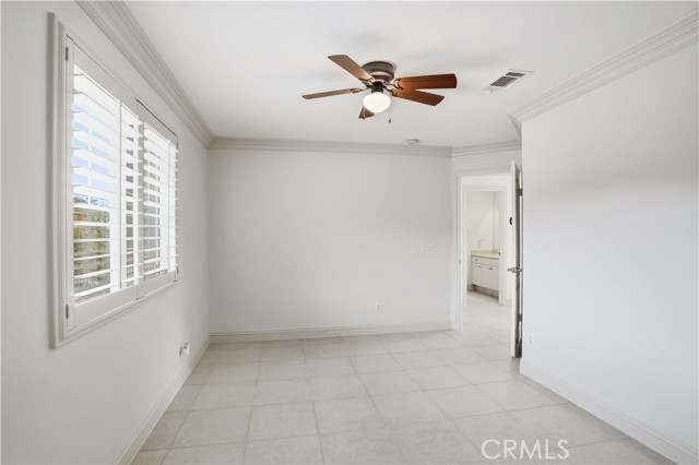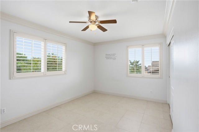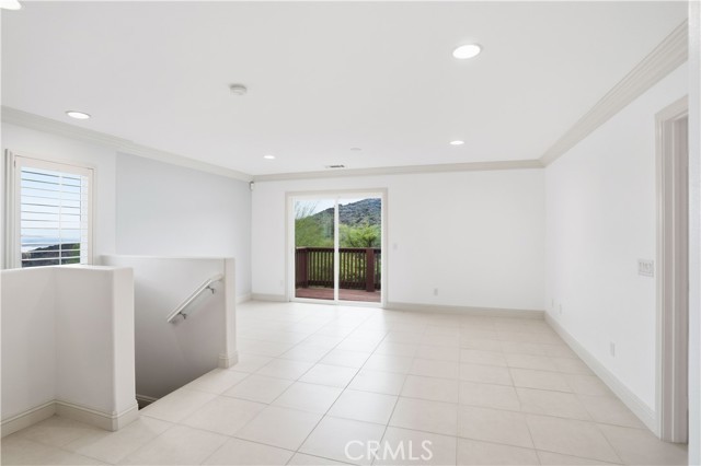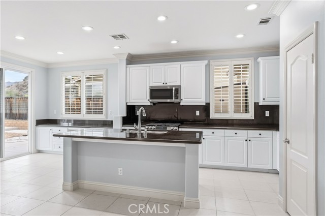 Experience refined living in the highly coveted Cambria Hills community of Lake Elsinore. This elegant 4-bedroom, 3-bath residence offers the versatility of a fifth bedroom or dedicated office space, perfectly designed for today's lifestyle. Set against a stunning backdrop of mountain and lake views, this serene retreat offers privacy with no neighbors behind and a peaceful setting immersed in nature. Inside, discover timeless sophistication with tile flooring throughout, plantation shutters, and custom crown molding. The gourmet kitchen showcases sleek black granite countertops, a built-in desk area, and modern cabinetry — ideal for both entertaining and everyday living. Upstairs, a spacious loft area with a sliding glass door leads to the deck, where you can enjoy beautiful views of the surrounding hills and lake beyond. Complete with a two-car garage and move-in ready condition, this Cambria Hills beauty blends scenic charm with modern elegance — all set within one of Lake Elsinore's most highly coveted neighborhoods.