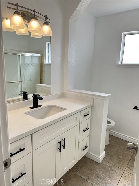 Welcome to this beautifully updated 3-bedroom, 2-bathroom home, perfectly situated on an expansive lot with endless possibilities. A brick wall divides the backyard into two distinct areas, offering versatility for future use. The property is already connected to the public sewer system, and a double iron gate provides access to the backyard — spacious enough for RV parking. Inside, you'll find a completely remodeled kitchen featuring brand-new cabinetry, elegant quartz countertops, and stainless steel appliances — including a gas stove, sink, dishwasher, and microwave. Both bathrooms have been tastefully renovated to match the kitchen's modern finishes, creating a cohesive, stylish feel throughout. Enjoy comfort year-round with central air and ceiling fans in every room and a cozy gas fireplace in the generous family room — ideal for cool winter evenings. Durable tile flooring has been installed in high-traffic areas, while new vinyl plank flooring adds a sleek touch throughout the rest of the home. The attached 2-car garage offers direct access into the home, making grocery unloading a breeze. Out back, a long covered patio sets the scene for outdoor entertaining, ideal for relaxing or hosting friends — true California living at its best. With RV access and room to add an ADU, build a pool, install a jacuzzi, or create additional parking, the potential here is endless. Conveniently located near shopping centers, gas stations, and major roads with quick access to the 15 Freeway. This move-in-ready home is waiting for its next owner to enjoy all it has to offer — don't miss this opportunity!