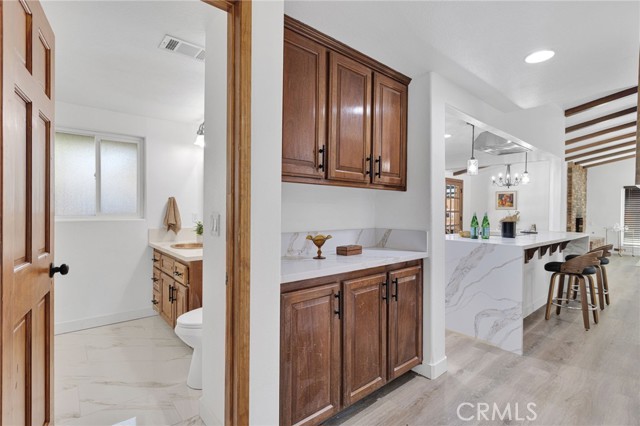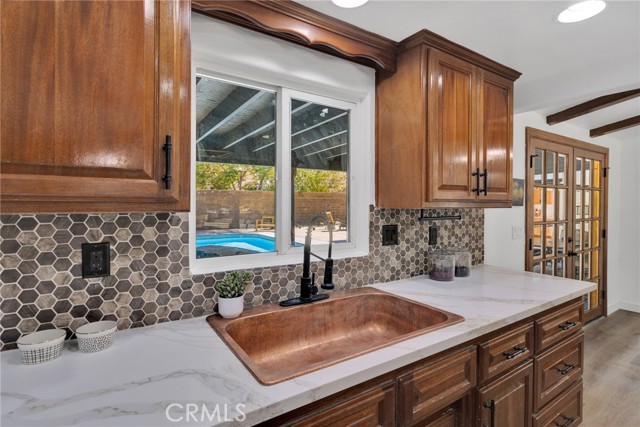 Beautifully Remodeled 4-Bedroom Pool Home Across from Hesperia Golf Course! Welcome to this stunning 4-bedroom, 3-bathroom home perfectly situated in one of Hesperia's most sought-after neighborhoods on the Mesa — just across from the Hesperia Golf Course. Step inside to discover a beautifully remodeled open-concept floor plan designed for modern living and entertaining. The spacious living areas feature charming bay windows that fill the home with natural light, and the kitchen opens seamlessly to the dining and family rooms, creating the perfect flow for gatherings. Each bedroom is generously sized, and the home is tastefully detailed throughout with stylish finishes and thoughtful upgrades. Step outside to your own private resort! The sparkling pool is perfect for summer fun, surrounded by a full block-wall fence providing exceptional privacy. The detached garage has been partially converted, offering endless possibilities — an ADU, pool house, home gym, or workshop. Located just minutes from the lake for fishing and scenic hiking trails, this home truly offers it all — space, privacy, recreation, and comfort in one of Hesperia's most desirable areas. Whether you're looking for an entertainer's paradise or a peaceful retreat with golf course views and nearby outdoor activities, 17539 Adobe Street is a must-see.