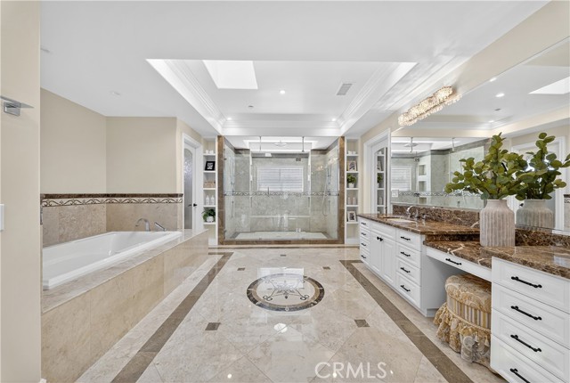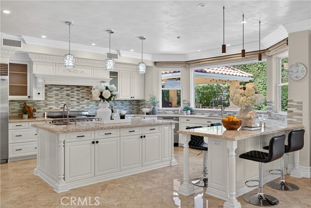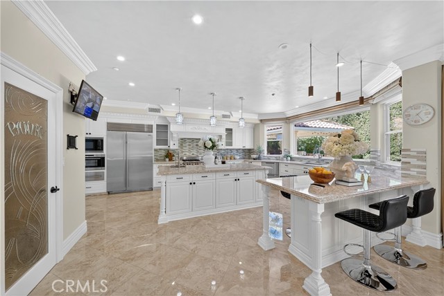 Step into timeless luxury at 2463 Abadejo, a masterfully remodeled residence in La Verne's prestigious gated community in Marshall Canyon Estates with over $700,000 in upgrades, this home has been reimagined into a private retreat where every detail speaks to elegance, comfort, and functionality. Inside, soaring hand-painted ceilings and brand new flooring set the stage for refined living. The chef's kitchen has been completely redesigned with custom cabinetry, a top-of-the-line Sub-Zero refrigerator and professional-grade Wolf appliances, perfect for both everyday meals and hosting gatherings. Each bedroom has been transformed into a private suite, featuring a newly added full bathroom, ensuring ultimate comfort and convenience for family and guests. The primary suite impresses with a customized walk-in closet and a spa-inspired bathroom showcasing dual vanities and dual walk-in showers. The home features a 4-zone central HVAC system and a well designed layout with two bedrooms and spacious common areas on the first floor, and the luxurious primary suite plus two additional bedrooms on the second floor. The upgrades extend outdoors with a completely redone landscape design. Enjoy resort style living with a stunning infinity-edge pool, a custom built pergola with a full outdoor kitchen including BBQ station, refrigerator, heaters, and a mist cooling system creating the ideal setting for entertaining year round. Located in a private, guard-gated community and within an award-winning school district, this residence blends exclusivity with convenience. Offering complete privacy, exceptional craftsmanship, and luxury amenities at every turn, this is not just a home, it's a lifestyle.