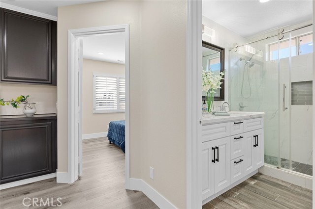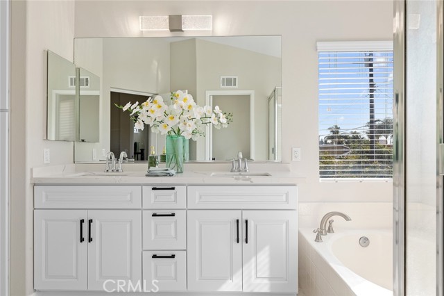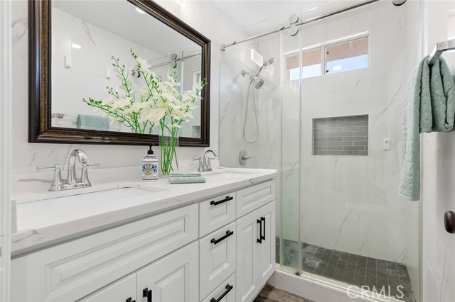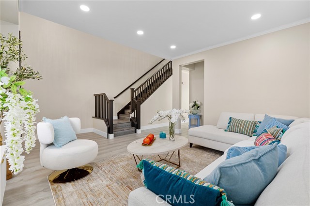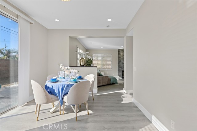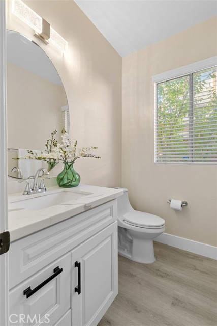 Welcome to this beautifully residence in a desirable gated community in the heart of Garden Grove. This home offers luxury, privacy, and convenience. This stunning 4-bedroom, 2.5-bathroom residence offers 2,015 sqft of living space on a 4,112 sqft lot and has been COMPLETELY UPGRADED AND REMODELED to deliver modern comfort and timeless style. Step inside to a bright and inviting open floor plan, perfect for both everyday living and entertaining. Every detail has been thoughtfully designed to enhance flow, functionality, and aesthetic appeal. The beautifully renovated kitchen, featuring high-quality vinyl flooring, seamlessly flows into the spacious family room, perfect for gatherings. A cozy fireplace adds warmth and charm to the space. Downstairs, a convenient guest bathroom with elegant vinyl flooring offers added convenience. The entire home is adorned with premium finishes, including high-quality vinyl floors, providing both durability and style. Upstairs, you'll find four generously sized bedrooms. The luxurious master suite boasts a large walk-in closet and an en-suite bathroom with a relaxing soaking tub, a step-in shower, and dual sinks. An individual laundry room on the second floor adds to the home's functionality. Step outside to your private backyard oasis, featuring beautiful pavers and an array of fruit trees. This serene space is perfect for enjoying your morning coffee or entertaining guests. Don't miss the opportunity to make this meticulously remodeled home yours. Schedule a viewing today and experience the perfect blend of elegance and comfort in the Lori Lane community!