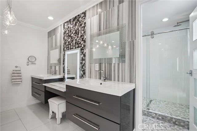 Imagine a single-level stunner with a designer's touch. This 3-bedroom, 3-bath beauty will have you captivated from the curb. Stacked stone walls, meticulous dryscaping, and a wide front yard set the tone as you arrive on this picturesque, tree-lined street. A terraced pathway leads to the sizeable porch, ideal for showcasing seasonal decor or chatting with passersby. Inside, wide-plank floors stretch under vaulted ceilings, with recessed lighting and crisp white hues giving the home an effortlessly modern air. The flow is seamless between the sunlit living room illuminated by bright windows and a refined dining hall, where built-in display shelves, a tray ceiling, and a dry bar stand ready for intimate celebrations. Your kitchen is equal parts function and flair: track lighting spotlights every culinary move, and the luminous countertops shine beside stainless steel appliances and an oversized sink. A waterfall-edge multi-seater peninsula gleams beneath pendant lights, inviting conversation while delicacies take shape under diligent hands. In the generous step-down family area, skylights crown soaring ceilings, while an accent wall creates a counterpoint to sliding glass doors that frame the connection to a private oasis. Your entertainer's backyard is a secluded haven, whether gathered under the gazebo beside the fire pit or enjoying quiet evenings sipping cocktails on the custom hardscaping bordered by living pathways. When it's time to unwind, tranquility can be found in any of the well-proportioned bedrooms, each with a contemporarily designed bath conveniently at hand. Double doors lead into an art-deco-inspired primary suite, where patterned tile floors shimmer with mother-of-pearl detailing. A chic pony wall with a glass topper separates the main section from stylish dual vanities, an integrated makeup station, and a rainfall shower with a bench, offering a resort-like experience every morning. Beyond a freestanding partition, an elegant chandelier glows over a sitting alcove and wardrobe area for moments of calm before venturing directly out onto the patio to join the gathering. Beyond the main residence, a detached structure has been transformed into a 1-bedroom suite with its own entry and courtyard. Notables include the pull-through garage, central heating, solar panels, laundry room, and an expanded driveway. Come experience the blend of artistry, function, and comfort that makes this Torrance treasure unlike anything else!