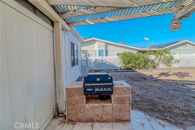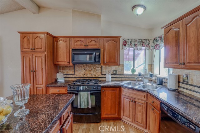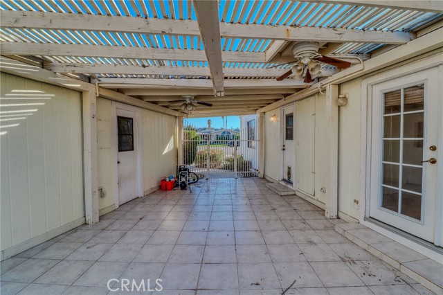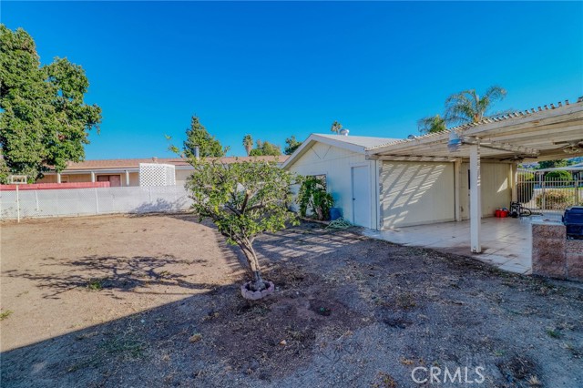 Welcome to this well-maintained 3-bedroom, 2-bath triple-wide home, ideally located at the end of a peaceful cul-de-sac. With 1,602 sq. ft. of open living space, this property offers comfort, privacy, and everyday convenience. A covered patio entry welcomes you into the bright, open layout featuring custom cabinetry throughout, ceiling fans, and warm-toned wood flooring for a cohesive, inviting feel. The kitchen showcases granite countertops, ample storage, and a double sink overlooking the front yard — perfect for natural light and curbside views. The spacious primary suite includes a walk-in closet and a private bath with elegant tilework and rich cabinetry. The laundry room is thoughtfully designed with cabinetry, a utility sink, and direct access to the patio and detached 2-car garage, making daily living effortless. Out back, enjoy a large covered patio for outdoor dining or relaxation, and a spacious fenced yard with plenty of room for pets, gardening, or future improvements. Close to shopping, dining, and local conveniences, this move-in-ready home blends quiet cul-de-sac living with practical comfort and charm.