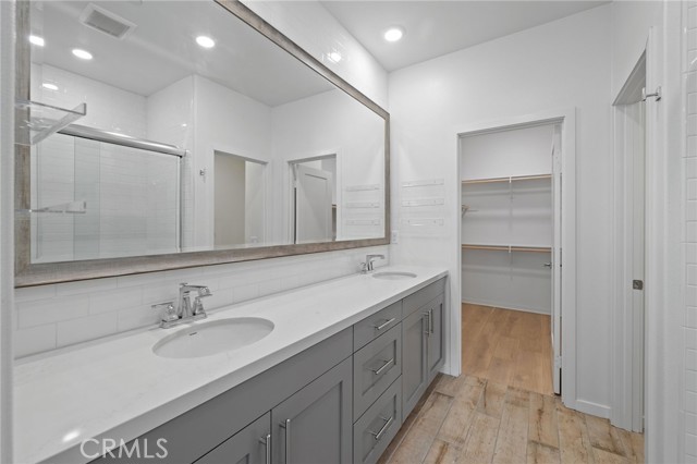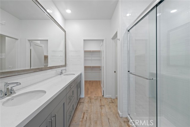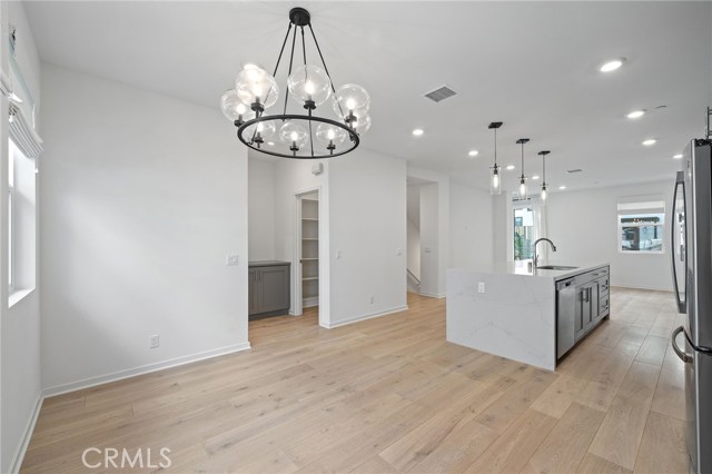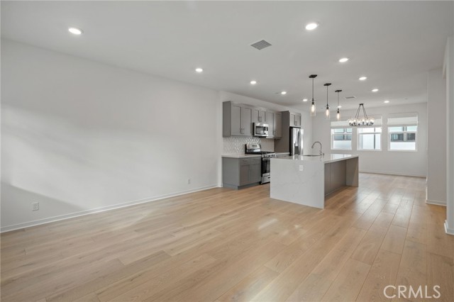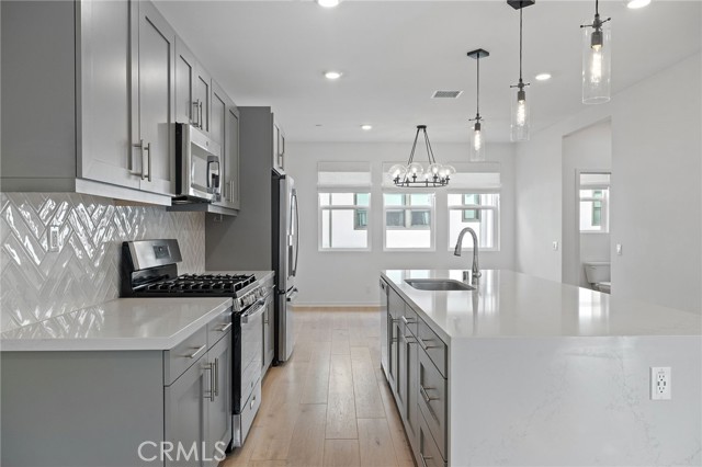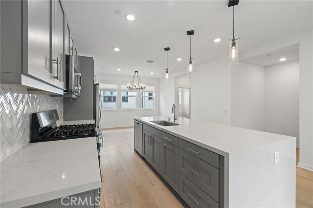 Experience modern luxury at 712 South Grable Circle, a professionally upgraded townhome in ParkerOne, a sought-after TRI Pointe Homes community in Orange. Built in 2021, this stunning residence showcases designer finishes throughout, including European Alabascato Dashwood hardwood flooring, Hunter Douglas Provenance woven shades, and a gourmet kitchen with quartz countertops, custom color upgraded shaker style cabinetry, a full herringbone subway tile backsplash, and a dramatic quartz waterfall-edge island. The bathrooms are beautifully upgraded with quartz countertops, framed mirrors, 6-inch backsplashes, and 3/8-inch glass shower enclosures. For a complete list of builders' upgrades please contact the listing agent. Enter through a charming covered porch and foyer to find a main-level office and powder room perfect for a home office or conducting business from home. The second level features an open-concept living area with a chef-inspired kitchen, walk-in pantry, guest powder room, and access to a spacious outdoor deck ideal for relaxing or entertaining. On the third level, the primary suite offers a walk-in closet, dual vanities, and a luxurious stand-up shower adorned with builder-quality upgrades. The secondary bedroom suite includes a soaking tub and its own private bath. A spacious laundry room is conveniently located on this level as well. Additional highlights include paid solar, sleek modern chandeliers, recessed LED lighting throughout, tankless water heater and dedicated EV charger circuit in the garage. The home enjoys a private interior location just steps from the community pool and spa, complete with cabanas and a BBQ area. Beyond your doorstep, enjoy close proximity to CHOC and St. Joseph Hospital, Chapman University, and Old Towne Orange offering an unmatched blend of luxury, comfort, and convenience. Minutes away from four major freeways the 22, 57, 5, and 55. Schedule your private tour today!