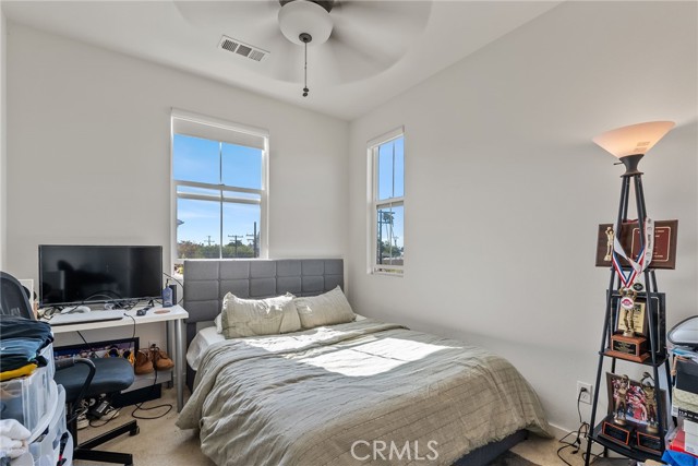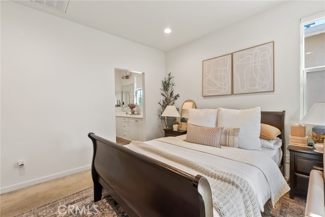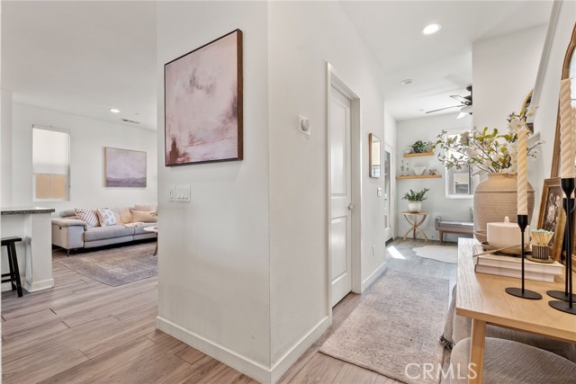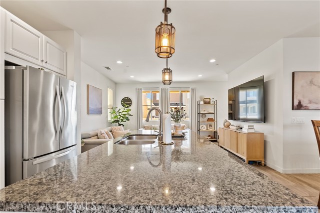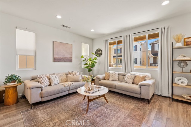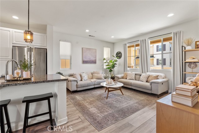 Welcome to this stunning, fully detached modern home built in 2016, ideally located in Anaheim's sought-after Historic Colony district just steps from the Anaheim Packing House. This 3-bedroom, 2.5-bath residence offers 1,753 sq ft of open and light-filled living space with no common walls. The home features an open-concept layout with a spacious living area, recessed lighting, hypoallergenic laminate flooring, and a chef's kitchen complete with white cabinetry, a large granite island, and ample storage. A versatile downstairs den provides the perfect space for a home office or playroom, while the upstairs primary suite includes dual sinks and a walk-in closet. Additional highlights include a Nest smart home system, built-in water softener, central air, dedicated laundry room, and a two-car attached garage plus driveway parking for two more vehicles. Located within the Avelina Community Association with low HOA dues, this home offers low-maintenance living close to major freeways (5, 57, and 91), making your commute effortless. Enjoy being minutes from Disneyland, Angel Stadium, and the future OC Vibe entertainment district — all while living in one of Anaheim's most walkable and vibrant neighborhoods that perfectly blends modern comfort with urban convenience.