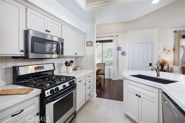 2 BEDROOM + LOFT! Discover the perfect blend of comfort, style, and flexibility in this beautifully updated townhome located in the highly desirable Vineyards community of Foothill Ranch. Step inside to an inviting open floor plan filled with natural light and thoughtful updates throughout. The remodeled kitchen is a showstopper — featuring quartz countertops, full backsplash, stainless steel appliances, shaker style cabinetry, and recessed lighting — and flows seamlessly into the dining and living areas, making entertaining effortless. Just beyond, a large enclosed front patio offers the ideal setting for outdoor dining, morning coffee, or quiet relaxation. Upstairs, the spacious primary suite is your private retreat, complete with a dual-sink vanity, shower/tub combination, private water closet, generous walk-in closet, and an outdoor terrace — perfect for enjoying Foothill Ranch's breezy evenings and the adjacent avocado groves. The second bedroom is bright and comfortable, served by a full hallway bath. A highlight of the upper level is the versatile loft, offering endless possibilities — it's ideal as a home office, workout space, media room, or even a cozy 3rd bedroom conversion. Convenient upstairs laundry adds everyday practicality. Additional features include a 2-car direct-access garage, hardwood flooring, and a downstairs powder room for guests. Residents of The Vineyards enjoy access to wonderful amenities, including a sparkling pool, relaxing spa, and kids' playground — all within a beautifully maintained community just minutes from shopping, dining, award-winning schools, the 241 Toll Road, and the scenic trails of Whiting Ranch Wilderness Park. Whether you're a first-time buyer, downsizing, or simply seeking a turnkey home in one of Foothill Ranch's most sought-after neighborhoods, 12 Anacapa Ct offers the lifestyle and flexibility you've been searching for.