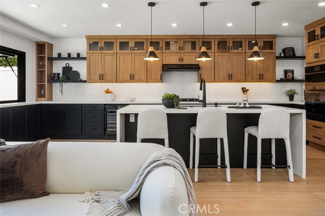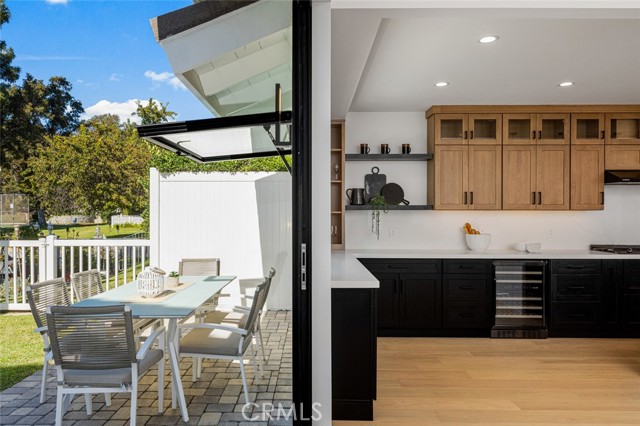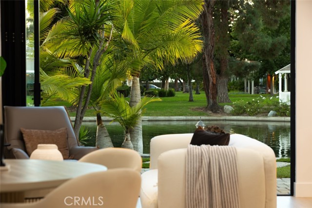 Guided by light, balance, and a quiet connection to nature, this reimagined lakefront residence embodies a refined simplicity that feels both modern and enduring. Every element has been thoughtfully composed. Each line, texture, and material contributes to a sense of calm and cohesion. The result is a home that reflects the beauty of restraint while embracing the warmth of everyday living. Expansive glazing defines the architecture, inviting the outdoors inward through a full-height accordion glass door and a counter-height fold-up window that opens directly to the lake. In these moments, boundaries dissolve, and the home becomes part of the landscape, its interior shaped by light, reflection, and air. Inside, the palette is measured and timeless, wide-plank oak flooring, softly veined stone, and bespoke timber joinery establish a foundation of natural warmth and texture. The kitchen anchors the open plan, its sculptural island and linear details balancing form and function with quiet precision. Subtle tonal contrasts and the gentle fall of daylight animate the interior, creating a space that feels alive yet composed. Two bedrooms on the lower level including one of the primary suites offer comfort and versatility, while the upper level introduces two additional bedrooms. Here the vaulted primary retreat is a place of stillness, defined by soft light, clean lines, and open views. The exterior continues the architectural language through a landscape of layered greenery, sculptural palms, and terraced pavers that step naturally toward the lake's edge. The composition feels deliberate yet effortless, each element enhancing the sense of openness and connection. Through its balance of architecture and landscape, this home captures the essence of contemporary California lakefront living, refined, timeless, and deeply attuned to its setting.