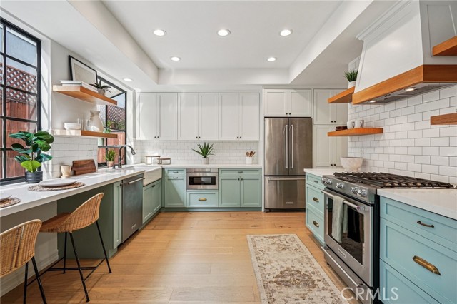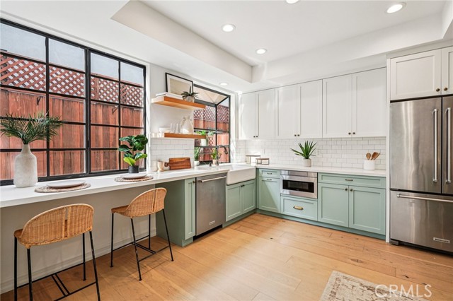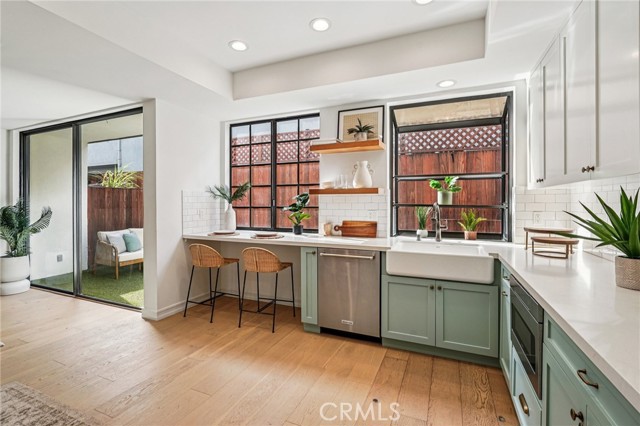 Beautifully remodeled 3-bedroom, 2.5-bath townhome situated on a tree lined street in one of Santa Monica's most coveted neighborhoods. Thoughtfully redesigned, this home features modern finishes, open living spaces, and abundant natural light enhanced by skylights in the hallway and bathrooms. The gourmet kitchen seamlessly connects to the dining and living areas, creating an inviting atmosphere for both entertaining and everyday living. From the dining area, step out to a private outdoor patio that offers additional space for lounging or al fresco dining. A convenient powder room is also located on the main level. The spacious primary suite is a true retreat with a cozy fireplace and a luxurious spa-like bath. Two additional bedrooms share an updated bath with designer finishes, providing comfort and flexibility for family, guests, or a home office. A private 2-car garage with direct access adds convenience, while the gated complex ensures privacy and security. Perfectly positioned near Montana Avenue's shops and cafes, the beach, and the highly regarded Roosevelt Elementary School, this home captures the essence of premier coastal living in Santa Monica.