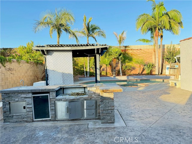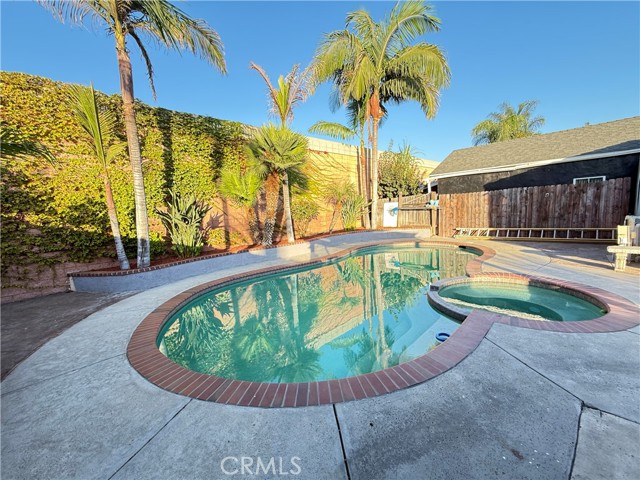 Charming classic home with POOL & JACUZZI ! Located on a quiet Cul-de-sac, fully fenced front yard and enclosed brick wall in back yard for privacy, with a detached garage that can easily be used as an ADU or pool house! Plenty of parking space, with side access and roll out gate. Conveniently located near all shopping amenities, and family fun centers like Knots Berry farm, Disney Land, etc. Just a couple minutes to freeway. Home boasts Spanish style Architectual design and arches, spacious bedrooms and layout. Living room and separate dinning area, with an abundance of natural light. Kitchen is open with granite countertops, plenty of cabinet space. Back yard is perfect for entertaining, with Gazebo and Barbecue island, mature palm trees. Lots of fruit trees and a kid and dog park next door.