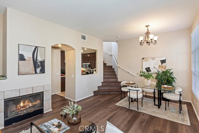 Welcome to this gorgeous, beautifully renovated townhome nestled in the desirable Anaheim Hills community. This light and bright residence offers 3 spacious bedrooms and 3 bathrooms within 1,081 square feet of expertly designed living space, with one bedroom/bathroom conveniently downstairs. The primary suite features a large walk-in closet and a luxurious en-suite bath, perfect for relaxing and unwinding. The home boasts a cozy fireplace in the living room, soaring high ceilings, and new luxury flooring throughout, creating a warm and inviting atmosphere. The modern kitchen shines with quartz countertops, a stylish backsplash, and ample space for family meals and entertaining. Enjoy stunning hilltop views from the comfort of your home or relax outside in the gated community's exceptional amenities, including a sparkling pool, BBQ area, gym, and beautifully landscaped grounds. The spacious 2-car garage provides added convenience with a ready to use electric charger. Ideally located near top restaurants, shopping, and highly-rated schools, this home offers the perfect blend of luxury, comfort, and lifestyle. Don't miss your chance to own this exceptional Anaheim Hills townhome!