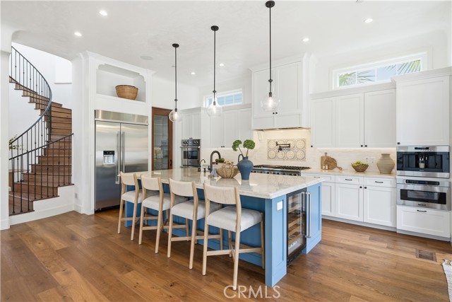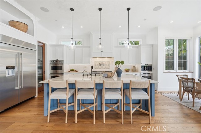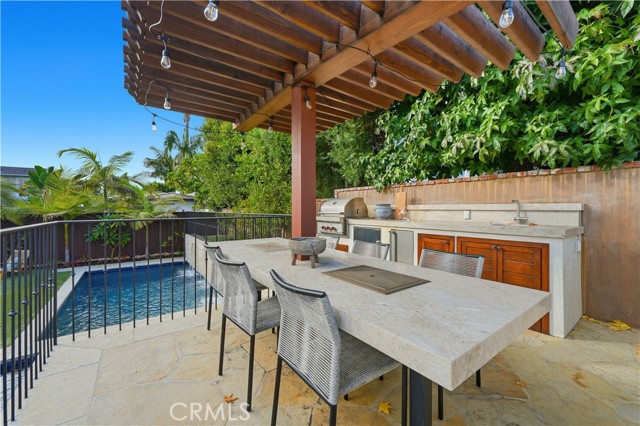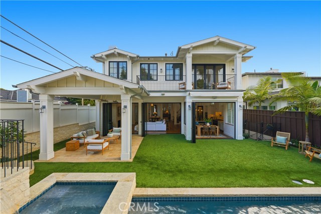 Rare East Manhattan Beach masterpiece where timeless elegance meets modern luxury. Built in 2021 by esteemed custom builder Patrick Kealy, on a coveted corner lot with a landscaped yard and white picket fence set the stage for timeless curb appeal. With 6 bedrooms, 6.5 bathrooms, a finished basement and approximately 5,738 SQFT (BTV) of living space on a 7,449 SQFT lot (BTV), this home offers scale without sacrificing warmth. Soaring ceilings and an open-concept floor plan flood the home with natural light and are enhanced by dramatic bi-folding doors that open seamlessly to a private backyard oasis — featuring a pool, spa, built-in Wolf BBQ and a custom Korean BBQ — creating the ultimate indoor-outdoor California lifestyle. The heart of the home is a chef's kitchen featuring top-of-the-line amenities with exquisite finishes, a walk-in pantry, stainless steel Viking appliances including double ovens, a bonus warming drawer, and a Wolf built-in espresso maker. The lower level offers a full basement with a full bar equipped with ice maker, refrigerator, and dishwasher perfect for a media room, playroom or a gym, complete with a guest suite. The upper level finds the majority of the bedroom suites, each with its own en-suite bathroom vaulted ceilings, and custom closets. The primary suite is like a retreat with a romantic fireplace and spa like primary bath. Located in one of Manhattan Beach's most desirable neighborhoods, East Manhattan Beach offers larger lots, larger homes, and close proximity to award-winning schools and parks. This residence is the Complete Family Retreat – a home that gives kids space to play, parents space to entertain, and everyone space to unwind. Only 15 minutes to LAX.