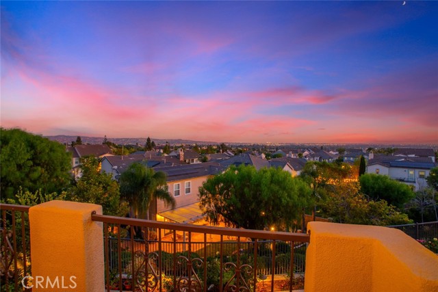 This turnkey estate, featuring distinguished Spanish architectural elements, is located within the prestigious Foxfield development of Vista del Verde. Model 2 offers a highly desirable floor plan with thoughtful upgrades that suit various lifestyles. The residence encompasses 3,920 square feet of living space, including four spacious bedrooms and two and a half bathrooms, as well as an attached GOUND LEVEL IN-LAW SUITE/CASITA (5TH Bedroom) with a private bathroom and separate entrance for added versatility. Upon entering the grand foyer, residents are welcomed by soaring vaulted ceilings and an open living room anchored by an arched gas fireplace with a pre-cast concrete mantel, surround, and hearth. Architectural highlights include dramatic ceilings, soffits, graceful arches, and a custom-crafted staircase with stained maple handrails and upgraded wrought iron balusters. The home features a large interior laundry room equipped with a deep sink and custom storage cabinetry. The gourmet kitchen is designed with a center island overlooking the dining area, extensive custom storage, a walk-in pantry, a five-burner cooktop with vented hood, double oven, built-in refrigerator, microwave, and dishwasher. The elegant dining room, bathed in natural light, is ideal for entertaining. Upstairs, the builder-option loft creates an inviting and flexible space suitable for a game room, office, study area, or home gym. The master suite includes a luxurious bathroom, private dressing area, walk-in closet, dual sinks, an oval soaking tub, and a separate walk-in shower. A walk-out balcony from the master bath provides impressive sunset and city light views. The backyard is designed for entertaining, with drought-tolerant landscaping, concrete pathways, a rose garden, a covered patio with an island, and a stainless steel BBQ with an additional burner and sink. The exterior is enhanced by stone accents, ornamental wrought iron fixtures, wood shutters, and elegant arches. The in-law suite stands out as a valuable amenity, offering private access, a spacious closet, a niche for a living area or office, and a full bathroom. This meticulously maintained home exudes charm and warmth, presenting an excellent opportunity for discerning buyers.