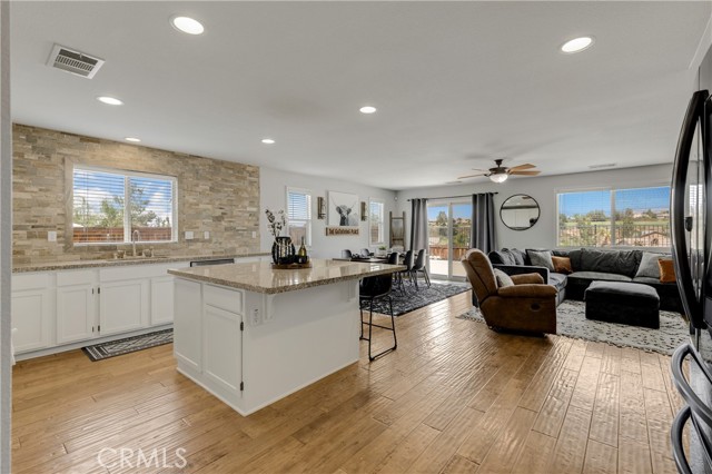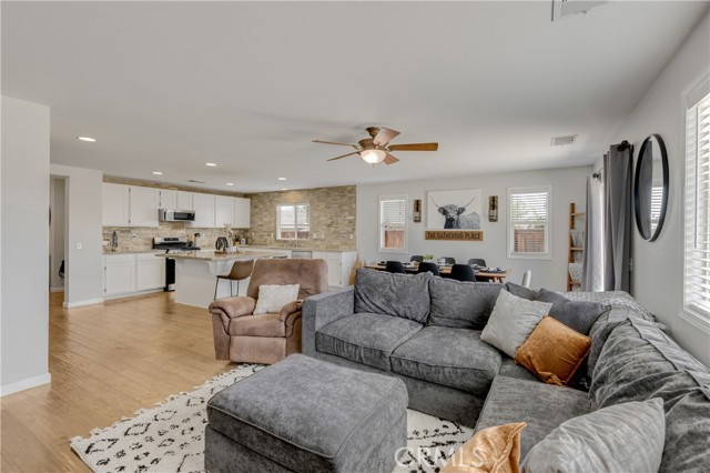 Welcome to this beautifully maintained single-story home located in the desirable gated community of Tournament Hills. Built in 2011, this 4-bedroom, 2-bath residence offers approximately 1,906 sq. ft. of living space on a spacious 10,454 sq. ft. lot with ample RV parking and a two-car attached garage. The open-concept floor plan features a bright family room with abundant natural light, recessed lighting, and elegant hardwood flooring. The gourmet kitchen is designed for entertaining, showcasing granite countertops, a stone backsplash, stainless-steel appliances, and a large center island with bar seating. The private primary suite includes a walk-in closet and en-suite bath with dual sinks, a soaking tub, and a separate shower. Secondary bedrooms are generously sized and ideal for family, guests, or a home office. A convenient indoor laundry room and additional storage options enhance everyday functionality. Step outside to enjoy mountain views and a large, fully usable backyard — perfect for outdoor entertaining, gardening, or creating your dream space. The extended driveway and RV parking provide exceptional flexibility for recreational vehicles, trailers, or additional cars. Located in a quiet, well-maintained, gated community featuring walking trails, a scenic lake, and nearby parks. Just minutes from local shopping, schools, and freeway access. Low HOA and low taxes make this a rare opportunity to own in one of Beaumont's most sought-after neighborhoods.