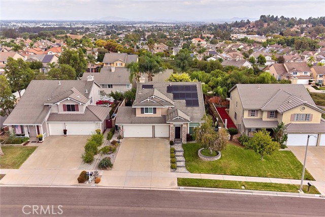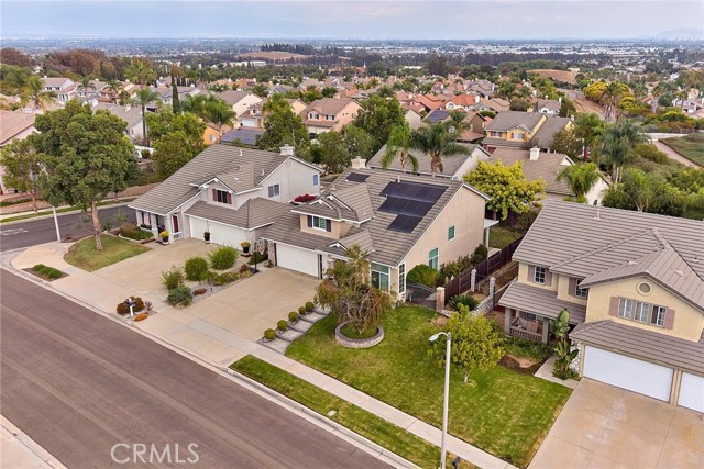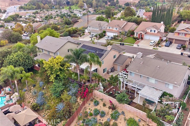 This bright and elegant 4-bedroom, 2.5 bath home is set in one of the most desirable neighborhoods of North Chino Hills. Step inside to a bright and spacious living room with soaring high ceilings that create an immediate sense of openness and elegance. The formal living and dining areas flow seamlessly together, enhanced by elegant porcelain tile flooring, perfect for gatherings and entertaining. Every window in the home has been upgraded with remote controlled, light filtering dual shades and roller shades, softly diffusing natural light to create a warm and inviting ambiance while maintaining privacy. The beautifully remodeled dine-in kitchen features custom cabinetry, stylish countertops with backsplash, a center island, stainless steel appliances, and a spacious walk-in pantry. The kitchen opens to a comfortable family room highlighted by a beautiful wall fireplace, adding warmth and charm, perfect for everyday living and relaxation. Downstairs also includes a separate laundry room and a tastefully updated powder bath. Upstairs, the primary suite offers a custom dual sink vanity and a large walk-in shower adorned with designer tile. Three additional bedrooms and an upgraded full bathroom, featuring a quartz countertop vanity, custom-tiled shower, and new glass shower doors, complete the upper level. Enjoy the tranquil backyard with a tropical inspired setting, featuring a covered Aluma-wood patio and a gas fire pit, ideal for entertaining or relaxing evenings outdoors. The three car garage provides ample space for vehicles and storage. Additional highlights include a solar power system with battery backup for energy efficiency and lower utility costs, as well as a Ring security system for peace of mind. Located in the heart of Chino Hills, this home is close to award-winning schools, parks, and premier shopping and dining destinations. Truly move-in ready, this exceptional residence combines comfort, style, and sophistication, welcoming you home with ease.