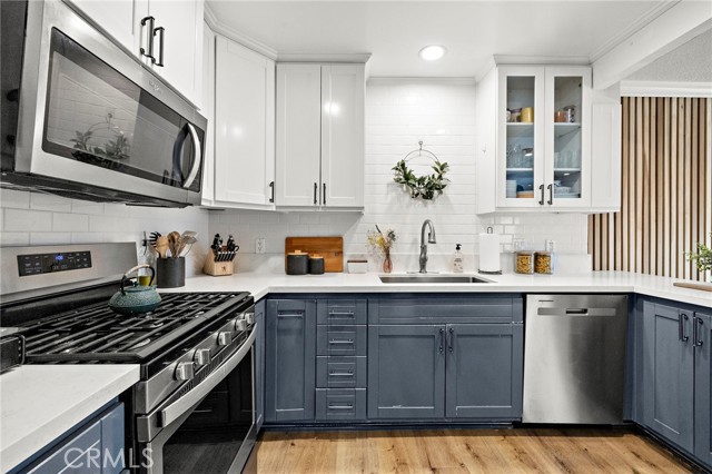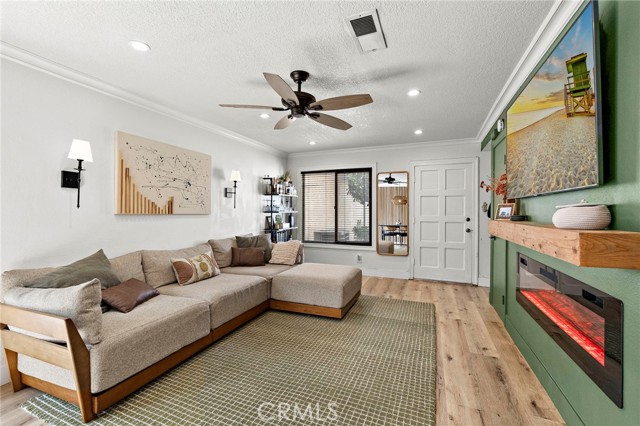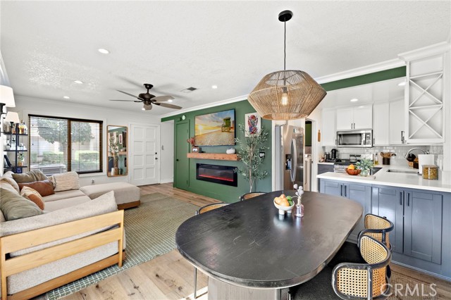 Discover the perfect blend of style and comfort in this beautifully upgraded two-story residence. Located in the desirable Anaheim Hills community, this home offers a modern aesthetic that feels straight out of a magazine. As soon as you step inside, you'll be wowed by the stylish home featuring a stunning wood wall that adds character to the downstairs area, while wainscoting in the hallway exudes sophistication. The dining room features a chic light fixture, perfect for at-home dining and hosting gatherings. Enjoy the benefits of a new AC system and new flooring throughout the home, ensuring a fresh and inviting atmosphere. The kitchen features elegant quartz countertops and a new dishwasher, making meal preparation a joy. A new washer is included in the indoor laundry area for added convenience. The living room is enhanced with recessed lighting and a stylish electric fireplace, creating a warm and welcoming ambiance. A custom closet in the primary suite provides ample storage, ensuring that every space is utilized efficiently. Step outside to a low-maintenance backyard with lush turf, perfect for entertaining or enjoying quiet evenings outdoors. This home includes an attached two-car garage and access to two community pools, ideal for relaxation and socializing. Situated near top-rated schools, scenic trails, and parks, this property is perfect for families and outdoor enthusiasts alike. Don't miss the opportunity to make this designer home your own, it's the ultimate combination of luxury, comfort, and convenience.