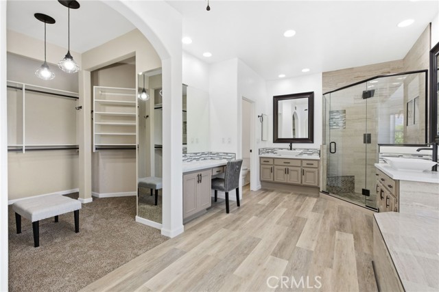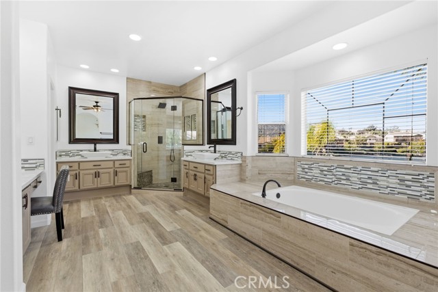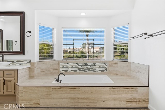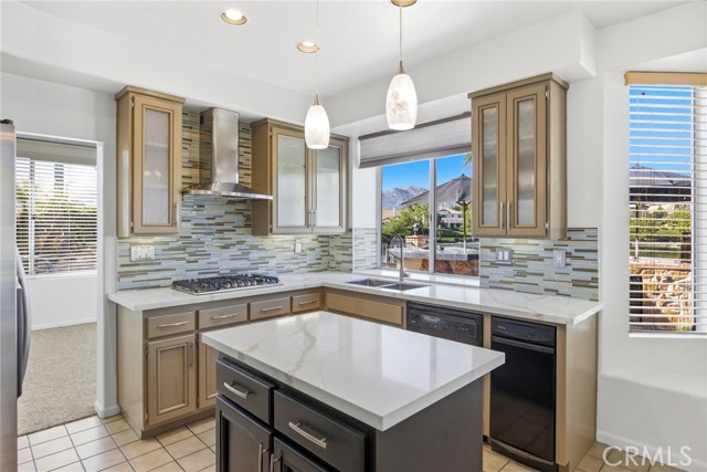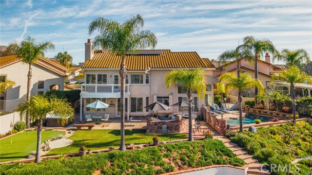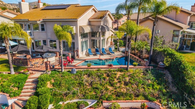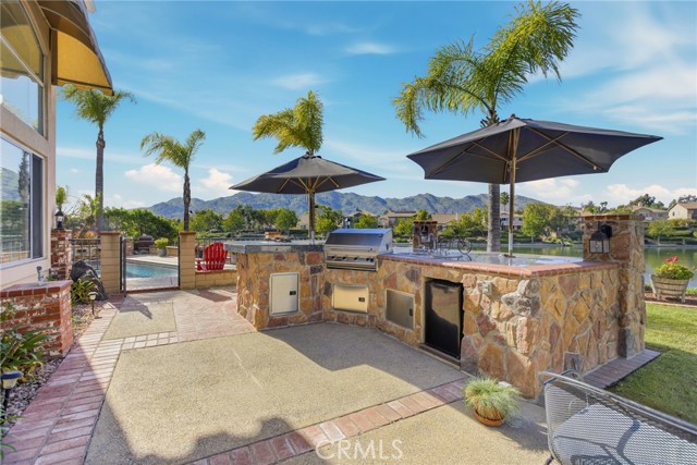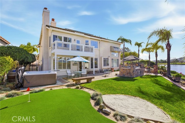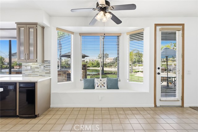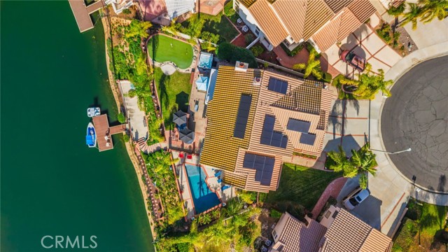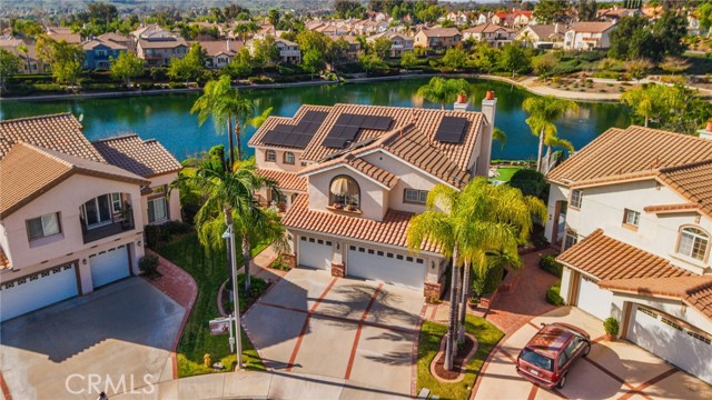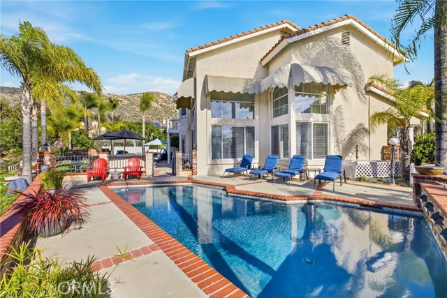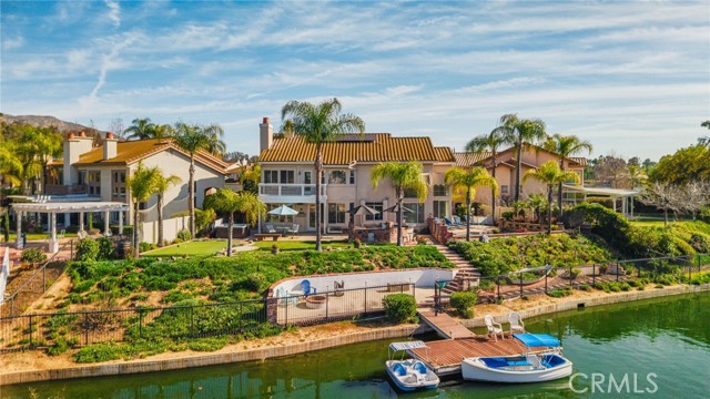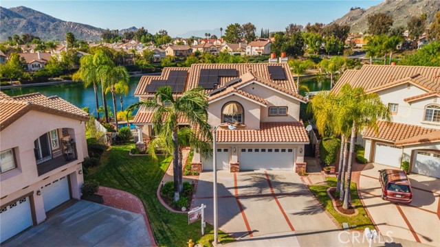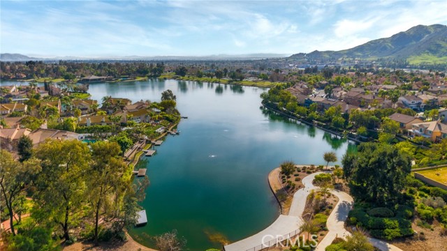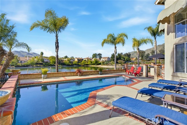 Welcome to your dream home in the highly desirable Sunnymead Ranch community, where comfort, style, and resort-style living meet in a rare lakefront offering. This stunning 4-bedroom, 3-bathroom home is one of the few lakefront properties with a pool, an opportunity that rarely comes on the market. From the moment you enter, you're greeted by soaring ceilings, bright white walls, and wrought iron stair railings, creating an open and elegant feel. A spacious living area sits just off the entry, perfect for entertaining or relaxing in natural light. A downstairs den offers flexibility for a home office, study, or bonus space. The beautifully updated kitchen is designed for any chef, featuring quartz countertops, ample cabinetry and counter space, a stunning backsplash, and a walk-in pantry. It opens seamlessly to the family room with a cozy fireplace and wet bar, ideal for gatherings and everyday living. Large windows throughout the home showcase views of the backyard, lake, and surrounding mountains, filling the space with natural light. A bedroom and full bathroom downstairs provide excellent guest or multigenerational living options. Upstairs includes two additional spacious bedrooms, a large loft perfect for a game room or TV lounge, and new carpet throughout. Modern tile flooring, ceiling fans, recessed lighting, and stylish fixtures enhance the home's modern appeal. The primary suite is a private retreat with its own fireplace and stunning views of the lake and pool. The custom-designed primary bathroom features stylish finishes, a soaking tub, walk-in shower, separate vanity area, and a custom-built walk-in closet with updated cabinetry. Step outside to a resort-style backyard oasis overlooking the lake. Enjoy a pool with waterfalls, a sun shelf, fire bowls, a separate above-ground Jacuzzi for added privacy, a putting green with built-in sound system, and a charming kids' water fountain. The extra-large built-in BBQ includes a grill, refrigerator, and utility sink, while a step-down seating area with a fire pit creates the perfect spot for evening gatherings. The backyard also offers direct access to a private dock, complete with two boats included. Additional highlights include paid-off solar and access to Sunnymead Ranch amenities such as a fishing lake, clubhouse, pool and spa, fitness center, parks, and sports courts. Conveniently located near schools, shopping, and freeway access, this home truly offers luxury, lifestyle, and location.