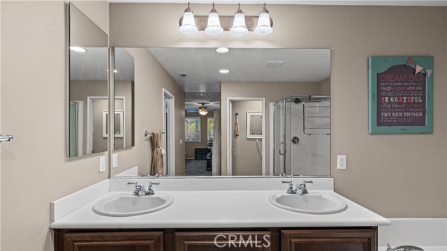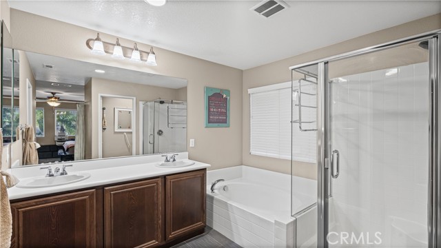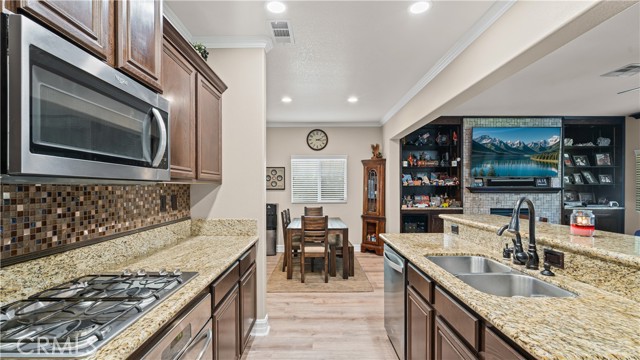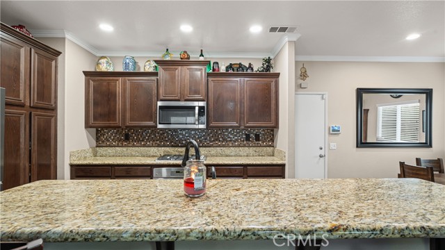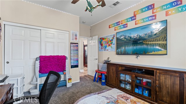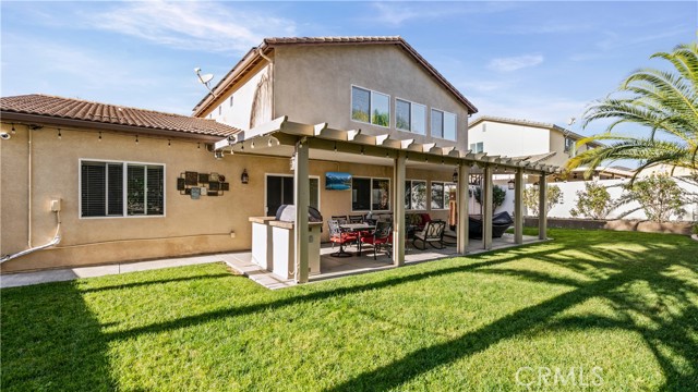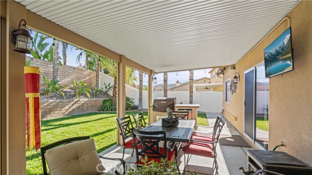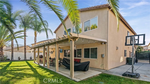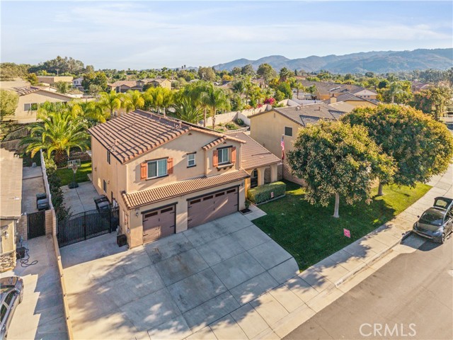 Beautifully Upgraded Home in Prime Wildomar Location! Located near Elsinore High School, Wildomar Library, shopping, and freeway access, this 4-bedroom, 2.5-bath home offers comfort, style, and convenience. Features include LED lighting with crown molding, upgraded laminate flooring, new carpet upstairs, and a custom master closet. The open living area includes a built-in shelf and an electric fireplace with the original gas connection still available. Enjoy the extended patio cover, BBQ area (included), and hot tub hookup, perfect for entertaining. The property also offers cemented RV parking with a 50-amp hookup. Energy-efficient solar with 24 panels, keeps bills low. Additional upgrades include baseboards, ceiling fans throughout, and added lighting in each room. Don't miss this well-maintained home with amazing upgrades inside and out!