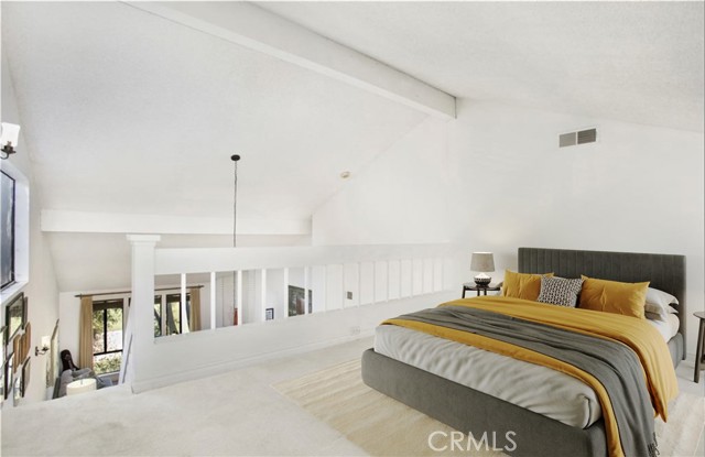 Welcome to Baja Finisterra on the Green — where privacy, convenience, and spectacular golf-course living come together. 2 Bedroom + Large loft (could easily be a third bedroom), PREMIUM LOCATION with this rare STREET LEVEL ENTRY residence, which offers easy access with NO STAIRS required to enter the home, and enjoys one of the most coveted positions in the community: an END UNIT directly ON THE 12TH HOLE with unobstructed, panoramic golf-course views framed by floor-to-ceiling living-room windows. Soaring vaulted ceilings and abundant natural light create an open, airy feel. The flexible layout features a primary suite, a secondary bedroom and bathroom, and a large loft that can be converted into a third bedroom. Enjoy a freshly painted interior, remodeled secondary bathroom, new commodes, plus laminate and tile flooring on the main level with carpeted stairs and a loft. The light and bright kitchen features quartz countertops, a stainless-steel farmhouse sink, a brand-new built-in wine cooler, designer lighting, and a convenient pass-through to the dining area. A sunny breakfast nook with an in-unit laundry closet accommodates full-size machines. Thoughtful flow makes entertaining easy, with an elevated dining area leading to the living room with a cozy fireplace and a quaint French door to the balcony, while multiple windows capture tranquil golf course vistas from nearly every room. Unwind and relax on the private deck, enjoying the songs of birds and the gentle ocean breeze. The primary suite off the living room has its own slider to the balcony and a vaulted ceiling. The ensuite bathroom boasts a dressing and vanity area, a large walk-in closet, and a walk-in shower. The association fees include water, trash, and a large enclosed spa with plenty of space for lounging in the sun. No mello roos and low tax rate. Street-level entrance, one-car garage with shelving, one assigned carport, and ample guest parking for ease and convenience. Lake Mission Viejo membership offers boat rentals, swimming beach, BBQ areas, playground, summer concerts, events, and more! Close proximity to shopping, dining, entertainment, and freeway access – this is a must-see!