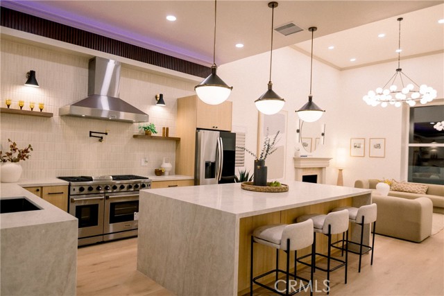 Welcome to this one-of-a-kind modern masterpiece, featuring 4 spacious bedrooms and 3.5 luxurious bathrooms. From the moment you step inside, you'll be captivated by the 17-foot-high ceilings, creating an open, airy, and grand atmosphere that's truly hard to find. Designed with exceptional craftsmanship and high-end materials throughout, this home delivers the perfect balance of modern luxury and everyday comfort. The chef-inspired kitchen boasts top-of-the-line appliances, including a 48" professional-grade range, sleek custom cabinetry, and a stunning island — perfect for both entertaining and gourmet cooking. Step outside to your private backyard oasis, complete with a custom putting green, ideal for relaxation, fun, and a touch of resort-style living right at home.