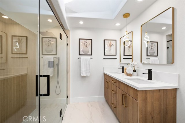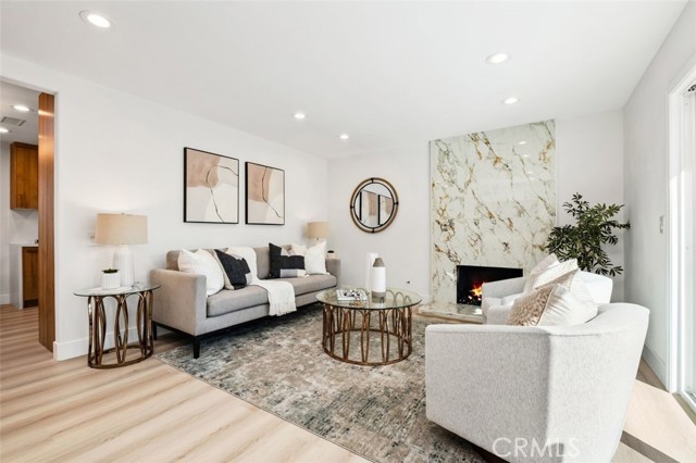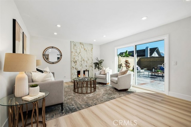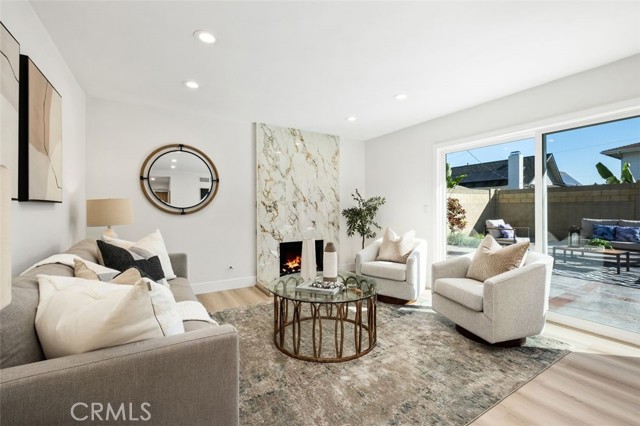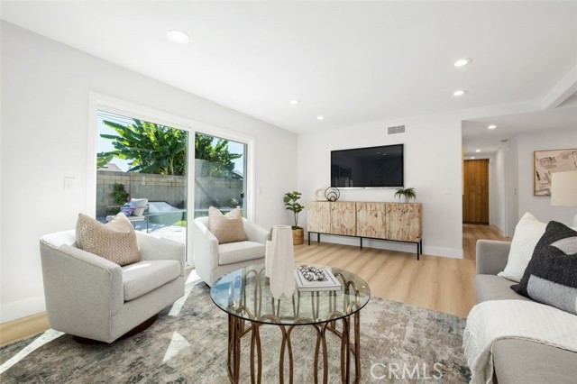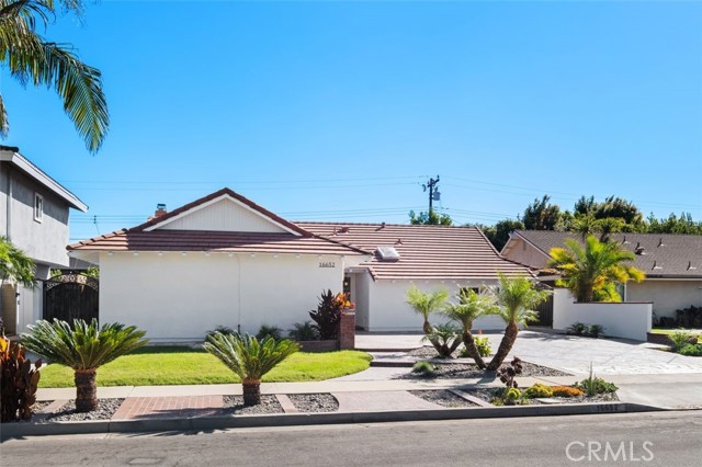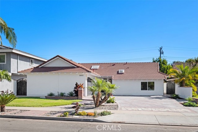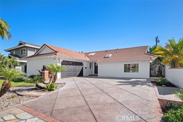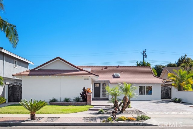 Discover this beautifully remodeled single-level home, offering modern design and open-concept living in a peaceful Huntington Beach neighborhood. Highly sought after for its SINGLE-LEVEL layout, this home has been thoughtfully updated inside and out, with all work, including Building, Electrical, Mechanical, and HVAC/Plumbing, completed under city PERMITS. The interior showcases brand new modern cabinetry, quartz countertops and backsplash, with stainless steel appliances in a bright, upgraded kitchen. Brand new vinyl flooring, recessed lighting, and energy-efficient dual-pane windows and patio doors create a clean, contemporary look throughout. The primary suite features a spacious reconfigured double shower with accent tile wall and elegant finishes, while both bathrooms boast double vanities, frameless glass, and premium fixtures. Other upgrades include new skylights, updated electrical and plumbing systems, a new HVAC system and ducting, and complete interior and exterior paintwork. Enjoy outdoor living in the large, freshly landscaped backyard, complete with new grass, palms, and irrigation, making it a perfect space to relax, entertain, or even add a future pool. With a 2-car attached garage and an oversized driveway, this home provides ample parking, including space for an RV, adding both convenience and value. This modern, turn-key single-level home combines stylish upgrades with comfort and functionality, just minutes from parks, schools, and Southern California's Sunny Beaches.