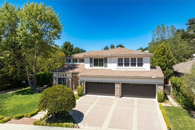 INCREDIBLE VALUE! Tucked away within the prestigious guard-gated enclave of Summit Point Estates, this exquisite five-bedroom, four-and-a-half-bath residence offers the perfect blend of timeless elegance and modern luxury. Situated at the end of a peaceful cul-de-sac, the home welcomes you with a stately double-door entrance that opens to soaring 30-foot ceilings and a bright, thoughtfully designed floor plan ideal for both refined entertaining and everyday living. The grand formal living and dining rooms exude sophistication, seamlessly flowing into a chef's dream kitchen — beautifully appointed with dual center islands, top-of-the-line Thermador appliances, and an abundance of custom French country cabinetry. The adjacent family room, anchored by a cozy gas fireplace, offers a warm and inviting ambiance, while the charming breakfast island provides the perfect spot for casual dining. A well-appointed guest suite with a private bath completes the main level, ideal for visiting family or friends. Upstairs, the expansive primary retreat features a serene sitting area, dual walk-in closets, and a luxurious en-suite bath with double vanities, soaking tub, and separate shower. Three additional bedrooms — two sharing a Jack-and-Jill bath and one with a private en-suite — provide ample space for family or guests. Walls of glass open to the resort-inspired backyard, where lush landscaping surrounds a sparkling pool and spa, expansive lawn, and covered patio — offering an idyllic setting for entertaining or tranquil relaxation. A finished four-car garage, complete with a 220-volt EV charger, adds to the home's exceptional amenities. Located in the scenic Santa Monica Mountains, just minutes from hiking trails, premier shopping and dining at The Village, and the iconic beaches of Malibu — this is California living at its finest.