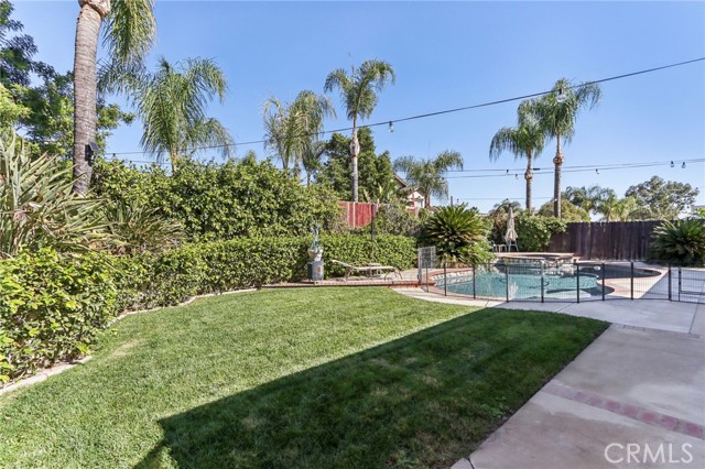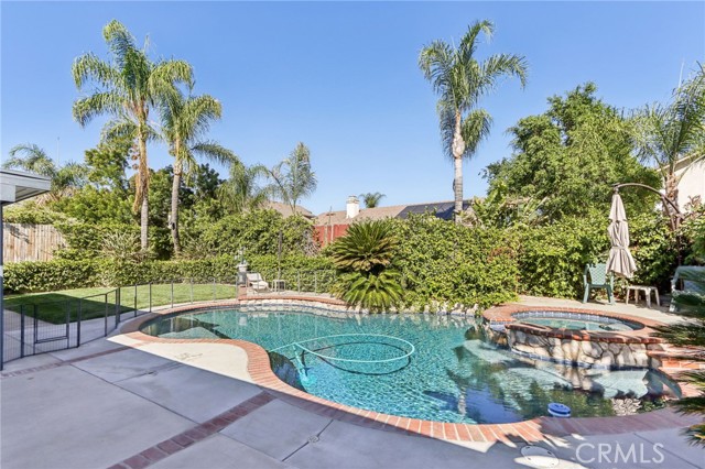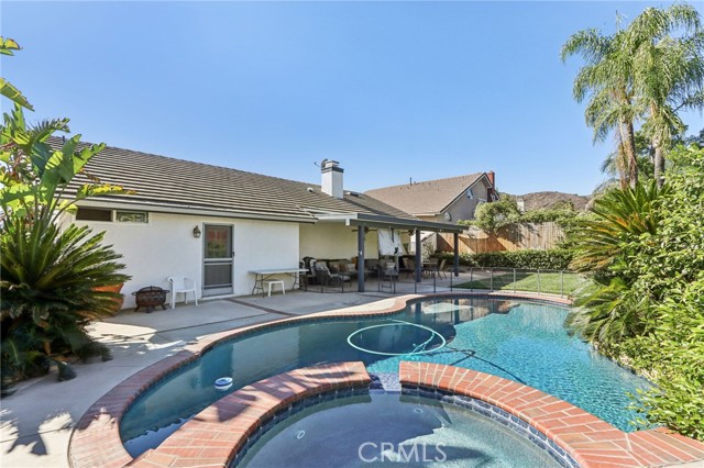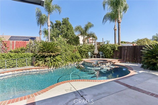 Welcome home to this charming single-story residence in the highly desirable north end of Lake Elsinore. Tucked away on a quiet street, the property offers a peaceful retreat while still providing convenient access to shopping, dining, and major freeways for an easy commute. On a nicely sized lot of approximately 7,405 sq ft, the home features ~1,410 sq ft of living space configured with 3 bedrooms and 2 full bathrooms. Built in 1989, the house has been thoughtfully updated to combine modern comfort with relaxed California living. Step inside to a light and welcoming interior: the kitchen has been remodeled with white cabinetry, quartz countertops, and stainless steel appliances — a turnkey space for everyday meals or entertaining. The living areas include a family room and a formal dining or living room, joined by a dual-sided fireplace adding a warm and stylish touch. The master suite opens to the backyard through double doors and offers a beautifully renovated en-suite bath featuring a marble and travertine tiled walk-in shower, updated glass-top vanities and contemporary fixtures. Now to the highlight: the outdoor space is truly tranquil and built for enjoyment. The rear yard is designed like a private oasis — lush landscaping, an oversized patio cover with ceiling fans, and a stunning in-ground pebble-tech pool complete with a waterfall feature cascading from the adjoining heated spa. There's even a fenced side yard that could serve as a dog run, plus the wide side-drive offers RV parking potential. Green-friendly upgrades round out the package: a whole-house fan, newer HVAC, hot water heater, ceiling fans throughout, and a 30-panel solar array that keeps electric bills minimal and a 220 for EV charge in the garage.The attached two-car garage provides direct interior access, and there's ample driveway space for additional vehicles.This home combines comfort, value and outdoor living in one appealing package. Whether you're unwinding by the pool, soaking in the spa, or relaxing indoors this home provides turnkey lifestyle in Lake Elsinore.