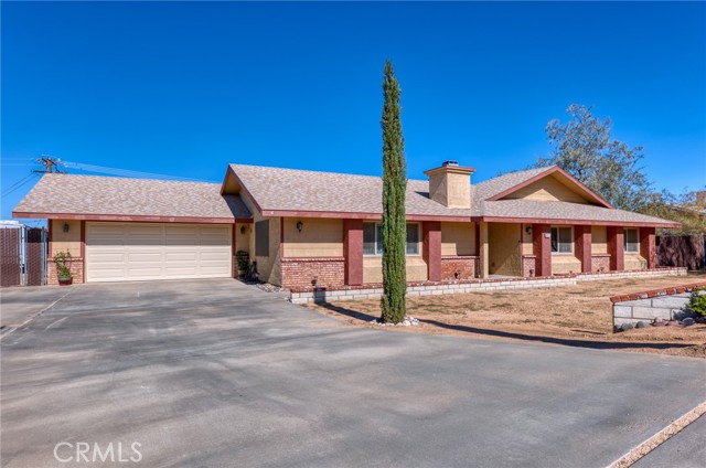 Welcome to this beautifully maintained 3-bedroom, 2-bath home nestled in the desirable Sky Harbor neighborhood of Yucca Valley, a peaceful, upscale pocket known for its wide streets, pride of ownership, and proximity to both town conveniences and Joshua Tree National Park. Spanning 1,690 square feet, this residence has been lovingly cared for and thoughtfully updated, offering comfort, style, and functionality in every detail. From the moment you step through the entryway, a mosaic tile inlay sets an elegant tone. The home features oversized ceramic tile floors in the kitchen and halls, new carpet and padding in the living areas and bedrooms, and a new HVAC system with upgraded ducting for year-round comfort. The spacious living room welcomes you with vaulted ceilings, abundant southern natural light, and a stone-faced fireplace with a new pellet insert and blower, the perfect centerpiece for cozy evenings. The expansive kitchen is a chef's dream, offering solid honey oak cabinetry, stainless steel appliances including a double oven, a glass tile backsplash, and a sink overlooking the backyard. With an eat-up breakfast bar and a walk-in pantry, there's no shortage of storage or counter space. A dining area just off the kitchen opens through new sliding glass doors to the backyard, creating a seamless indoor-outdoor flow ideal for entertaining. The guest bathroom features a long vanity with ample counter space, a shower/tub combo, and designer glass tile backsplash reaching to the ceiling. Both guest bedrooms are generously sized with ceiling fans, new carpet, and great natural light. The primary suite offers vaulted ceilings, plush carpet, and a private bath with a large walk-in shower and tile countertops.Step outside to your private backyard oasis, a north-facing covered patio perfect for lounging in the shade, an above-ground pool with wood decking, and lush desert landscaping accented by fruit trees and a storage shed. The yard is fully fenced and thoughtfully designed for low maintenance living. Additional highlights include a 30-amp RV hookup with clean-out and new retaining walls in the front yard, adding both function and curb appeal. Ideally situated just minutes from shopping, dining, and highly rated schools, this home also offers quick access to the Black Rock hiking trails, Joshua Tree National Park, and the vibrant arts and dining scene of downtown Yucca Valley. This home is prefect for a full time residence or desert retreat.