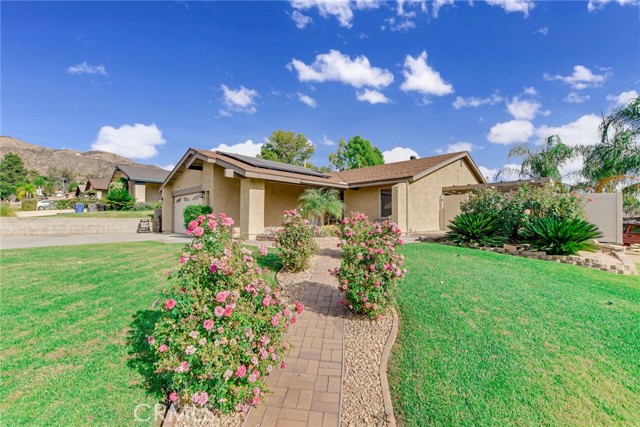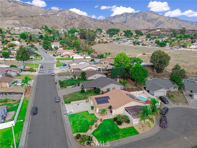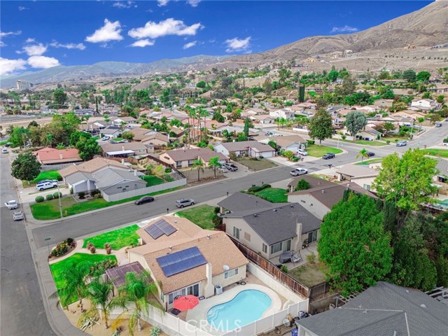 Beautiful Corner-Lot Home with Pool, Solar, and Mountain Views in the hills of Highland! Welcome to this beautifully maintained 3-bedroom, 2-bathroom home that perfectly combines comfort, efficiency, and style. Situated on a desirable corner lot, this property boasts amazing curb appeal with lush, well-kept landscaping, newer vinyl fencing and a welcoming exterior that instantly catches the eye. Step inside to a bright and inviting living space featuring a cozy fireplace, ideal for relaxing evenings. The open layout flows effortlessly to a roomy kitchen and dining area — perfect for family gatherings and entertaining guests. Enjoy year-round comfort and low energy costs with ample efficient solar panels, a whole-house fan, and a tankless water heater. Pride of ownership is evident throughout, from the immaculate interiors to the thoughtfully maintained yard. Outside, your private backyard retreat awaits! Cool off in the sparkling built-in pool, unwind under the large covered patio, and take in the quietness. This home truly has it all — modern efficiency, outdoor enjoyment, and timeless charm — all on a prime corner lot with unbeatable curb appeal. Don't miss your chance to make this beautiful property your forever home!