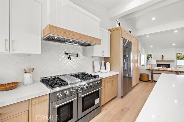 GORGEOUSLY REMODELED, NEW AND RARE SINGLE STORY. 5392 Sierra Roja is 4 Bedroom, 2 bathroom with timeless coastal elegance in highly coveted Turtle Rock Sierras. Transformed in 2025 by Pearl 39 Construction, interior square footage added with city of Irvine permits!! The backyard has also been expanded by approximately 700sf. Visitors will immediately be impacted upon entry as the designer exposes perfect flow of the recently vaulted formal living room, kitchen and dining area. The wide open entrance also includes a statement fireplace from floor to ceiling. Entertainer's kitchen features carefully curated materials including custom ~10ft island cabinetry, ample bar seating, and slab countertops. Commercial grade appliances include 48" THOR range and 42" DACOR refrigerator. Professionally designed throughout with contemporary white oak cabinetry, wall lighting and elegant wall paneling. French doors lead you to a private interior courtyard for perfect for entertaining or lounging. The Primary bathroom includes dual vanity expanded and master shower. Exterior ground cover includes new irrigation, polished pea gravel, exposed aggregate concrete pours in the driveway, courtyard as well as the spacious backyard. All new Presidential roof, A/C, ducting, PEX piping, furnace, electrical panel, water heater, dual sided black retrofit/new construction window and CAT 6 wire. The home is surrounded by masterplanned parks, trails, and amenities. Irvine Unified is recognized as one of the top school districts in California and home to UC Irvine, a nationally recognized top public university - Go Anteaters! Turtle Rock, Irvine buyers will recognize 5392 Sierra Roja as an opportunity not to be missed.