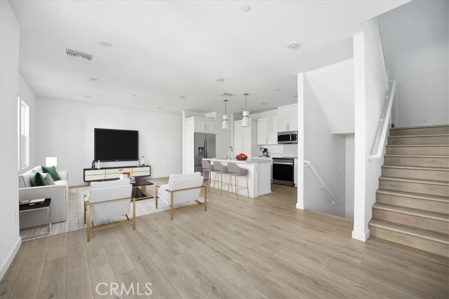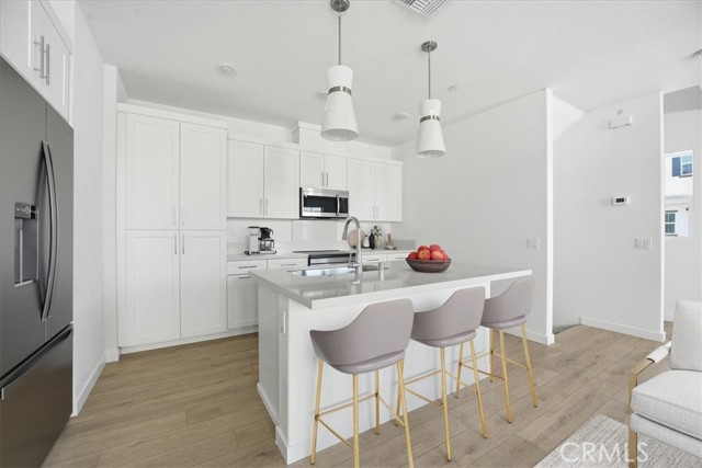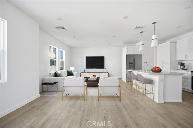 NEW CONSTRUCTION MOVE-IN FOR THE HOLIDAYS! This stylish 3-story end-unit townhouse offers modern finishes and comfortable family living. The spacious, inviting ground-level entry includes a convenient coat closet. The second floor features an open-concept layout with a contemporary kitchen complete with a center island, sink, dishwasher, and bar seating, all opening to the great room — perfect for entertaining and family gatherings. A powder room with modern finishes adds convenience for guests. Upstairs on the third floor, you'll find a secondary bedroom with a full bathroom, a side-by-side laundry closet, and a private primary suite enhanced by built-in cabinetry and a modern, spa-like ensuite bath with linen storage. Located within a beautifully appointed gated community featuring desirable neighborhood amenities including a sparkling pool and clubhouse. Enjoy modern comfort, convenience, and turnkey living! PROFESSIONAL PICTURES HAVE BEEN VIRTUALLY STAGED.
