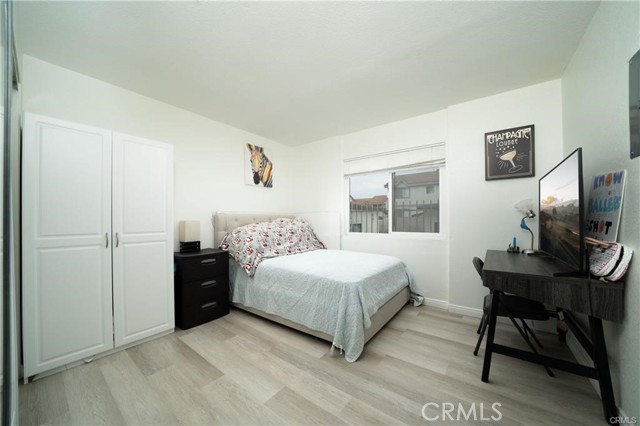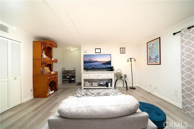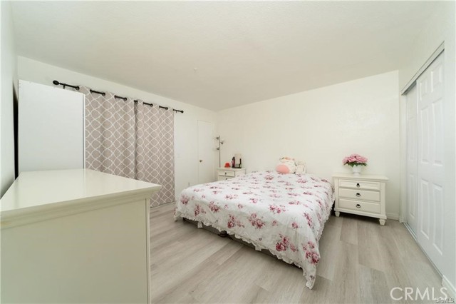 Welcome to a charming and cozy corner condo unit featuring 2 bedrooms and 2 bathrooms, with the master bedroom offering its own private balcony. Nestled in a peaceful community, this home provides added privacy with only one shared common wall, creating a quiet and serene living environment. The condo is well-maintained, showcasing elegant vinyl flooring throughout. Enjoy a spacious, open-concept living area and a modern kitchen with granite countertops, stainless steel appliances including a gas range, dishwasher, microwave, and double sink with premium faucet. The sliding door leads to a tranquil yard with tree views and lights, perfect for relaxation. Additional conveniences include an in-unit laundry room, Central Air conditioning, and 2 nearby carport parking spaces. The HOA covers water, trash, and building insurance. Ideally located close to supermarkets, shopping, restaurants and easy access to the 22 freeway, this condo offers both comfort and convenience.