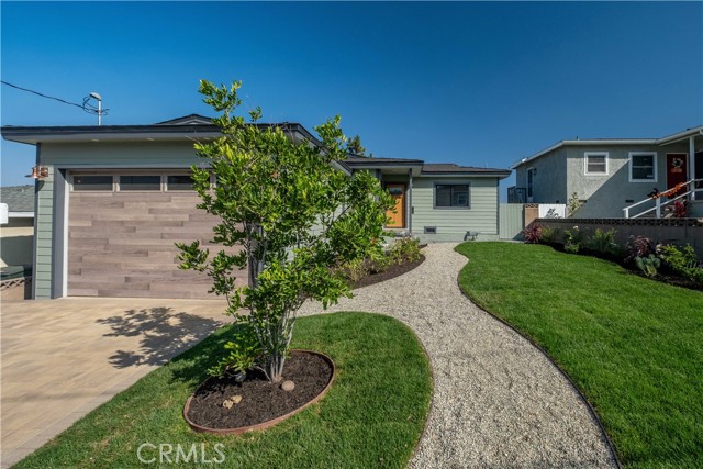 Welcome to your future home at 25710 Crest Rd, a true "Honey, stop the car!" opportunity in the desirable Hillside Walteria neighborhood of South Torrance. This beautifully updated 4-bedroom, 1.75-bath home is ideally located just half a mile from Rolling Hills Estates and less than five miles from the beach. Boasting exceptional curb appeal, it features new exterior paint, Hardie siding, a 50-year CertainTeed Presidential Shingle roof, new fascia boards, soffits with casement lighting, three new exterior fixtures, an oversized custom garage door, a new paver driveway, tankless water heater, 200 AMP electrical panel, EV charger, and a stunning Signet fiberglass entry door with privacy glass. The front and rear landscaping showcase new sod, sprinklers, and drip systems, along with a Carrotwood tree, Green Gage plum tree, apple and lemon trees, and 45 new privacy trees in the backyard. Inside, natural light fills the open living room with refinished original hardwood floors, smooth ceilings, new baseboards, and LED recessed lighting that flows into the dining area with beautiful views. The fully remodeled kitchen features new soft-close cabinetry, quartz countertops, a farmhouse sink overlooking the landscaped front yard, stainless steel appliances, and luxury laminate flooring. The sunroom has been converted into a fourth bedroom with a private ¾ bath, recessed lighting, mirrored closets, and direct access to the rear yard. Both bathrooms include new marble flooring, full bathroom has new vanity, and elegant finishes. Additional highlights include new dual-pane Marvin Low E3 windows, fresh interior paint, skim-coated walls, five ceiling fans, and an inside laundry room with cabinetry. The spacious backyard is perfect for relaxing, entertaining, barbecues, or gardening. Conveniently located near Trader Joe's, AMC Theatres, Whole Foods, 24-Hour Fitness, and an array of shops and restaurants. This stunning home is also located in wonderful neighborhood within top-rated schools. This gem won't last long, it's a must-see!!