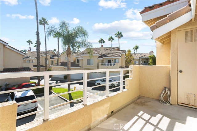 This beautifully maintained Del Prado townhome offers the perfect blend of comfort, style, and convenience. Located on an upper carriage end unit, you'll enjoy peace and privacy with no one above or below. The corner location with expansive windows fill the home with natural sunlight throughout the day. Step inside to an elegant open-concept floor plan with soaring vaulted ceilings. The spacious living area features a cozy fireplace and opens to a private balcony overlooking the neighborhood — perfect for relaxing or entertaining. The kitchen offers ample cabinet space along with a newer microwave and dishwasher. The generous bedroom includes a closet with built-in organizers, while the bathroom boasts a dual sink vanity. Additional highlights include recessed lighting, inside full-size laundry, and an attached direct-access one-car garage. Del Prado residents enjoy resort-style amenities, including two pools, two spas, greenbelts, and a tot lot. Ideally located near Rancho Niguel Shopping Center with restaurants, shops, and a movie theater, with easy access to Toll Road 73 and nearby freeways. Welcome Home!