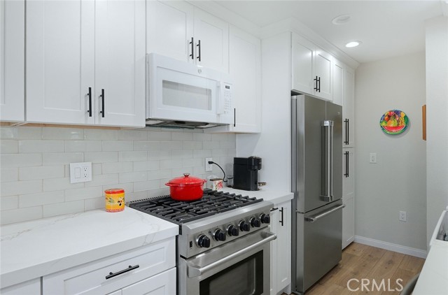 Beautifully Remodeled 2 Bedroom Condo in a 55+ Huntington Beach Gated Community, Just 3 Miles from the Ocean! Welcome to this stunning, completely Remodeled Ground-floor End unit located in a desirable gated community of Huntington Beach. Just 3 miles from the sand, this modern coastal retreat offers the perfect blend of style, comfort, and convenience. Step inside to discover an open-concept layout featuring luxury vinyl plank flooring, crown molding, shutters, and abundant natural light. The updated kitchen shines with quartz countertops, stainless steel appliances, and sleek cabinetry, perfect for cooking and entertaining. Enjoy easy single-level living with NO Stairs, ideal for seniors seeking comfort and accessibility. Relax or entertain on your private patio, surrounded by lush landscaping for added privacy. Located within a secure, gated community offering well-maintained grounds, plenty of parking including a private 1 car carport, and an affordable HOA, this home delivers exceptional value, BEST Price in HB, just minutes from world-class beaches, shopping, dining, and freeway access.