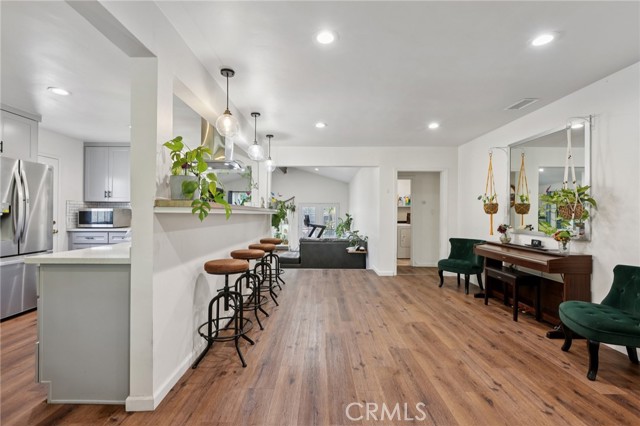 Welcome to this beautifully updated 3-bedroom, 2-bath home offering comfort, functionality, and thoughtful upgrades throughout. Originally 1,393 sq. ft., the home has been expanded to include an additional approx. 400 sq. ft. lower-level living room/den featuring a gas fireplace and double-pane windows, all completed with city permits and up to code. Recent upgrades completed within the last five years include: • Full kitchen remodel with new cabinets, fixtures, double pane windows and flooring that extends through the common areas • Recessed lighting throughout the main living spaces • Updated bathrooms and laminate flooring in all bedrooms • New central HVAC system with new ductwork (approx. 2 years old) • New water heater (approx. 2 years old) • Partial roof replacement (2/3 replaced during expansion project) • New backyard cement slab and two underground storm drains for improved drainage Enjoy the spacious backyard filled with established fruit trees, including avocado, orange, lime, fig, dragon fruit, and cactus. Additional highlights include an insulated garage door. Garage used as a playroom. This move-in ready home offers a rare combination of modern upgrades, expanded living space, and a peaceful outdoor setting in one of Downey's most convenient neighborhoods.