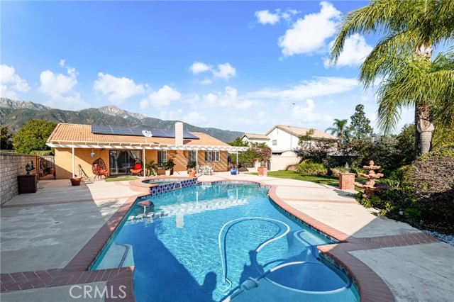 This charming home is located on a 12,065 square foot lot in the beautiful city of Alta Loma. As soon as you lay eyes on the home you will notice the Pride in Homeownership. Here are just a few of its many other outstanding features: + Corner-lot , single story , 3 car garage, eye-catching curb appeal + You'll step into a flowing 1,572 square foot open concept floor plan that is in "Pristine move in condition". You will take notice of the natural light that flows gracefully into the home from well-positioned windows. Other features include, plantation shutters, and newly installed luxury vinyl flooring throughout • The spacious living room is bathed in natural light from a multitude of windows • You are going to truly appreciate the kitchen's abundant cabinets, ample granite counters, durable dual basin porcelain sink and faucet, sit down breakfast area with its direct backyard access, and the convenience of the adjacent formal dining area + The family room with its cozy gas-burning fireplace flows seamlessly with the formal dining room and kitchen, you'll find it very easy to serve and entertain your guests simultaneously + A total of 3 bedrooms + The grand suite has walk-in closet plus a sumptuously appointed bathroom with huge mirrored dual sink vanity, walking- in glass enclosed shower and private commode. + 2 bathrooms; 1 is located conveniently for your guests. Functionally located laundry area in the garage with storage. + The solar energy system will help keep your utility bills low • Central air & heat for year-round comfort + You're going to enjoy the backyard oasis that offers a beautiful heated pool, jacuzzi , covered patio, and an assortment of fruit trees. • Plenty of secure off street parking for all of your vehicles and other toys on the oversized concrete driveway and and the 3 car direct access garage • Great location close to schools , grocery stores, parks, and the 15 & 210 freeways.