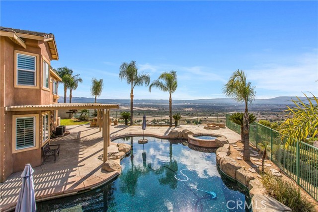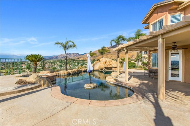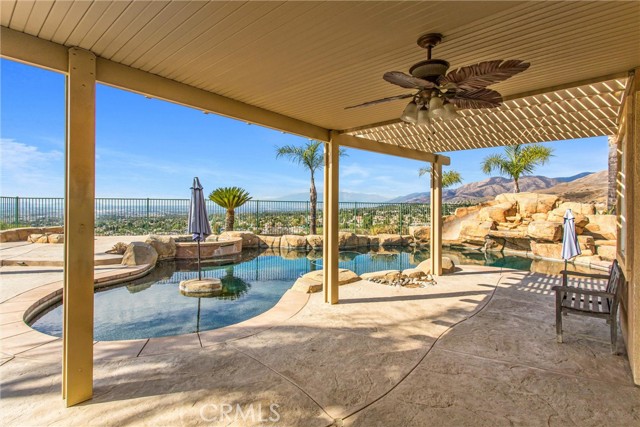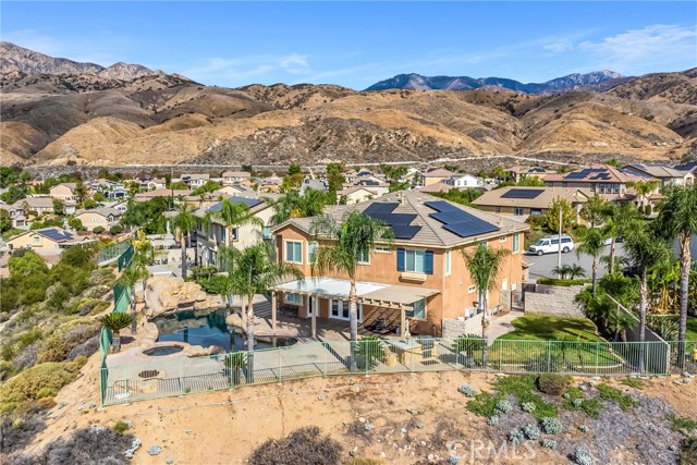 WELCOME TO THE BEST VIEWS IN THE INLAND EMPIRE!! This One of a kind lot has a custom midnight blue pebble tech plaster pool that has a waterfall and a slide and the most breathtaking views in the East Highland Cove! This home offers 4062 sq. ft, has plantation shutters throughout. 5 bedrooms, 4 1/2 bathrooms, office, large laundry room, living room and 2 dens and a 11,200 sq. lot. The backyard has brick walls and a natural gas built in BBQ and fire pit. Possible In-Law floor plan. The neighborhood is also located within Redlands school district and is close to shopping, dining, and commuter routes. Also, the solar is assumable. THE OWNER WILL CARRY THE NOTE FOR A MUCH BETTER RATE!!!!