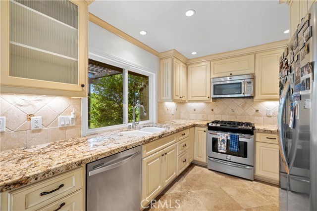 Welcome to 27972 Calle Casal – A Truly Special Place to Call Home. Tucked away in a peaceful and private location, this beautifully updated Blanca model offers comfort, style, and modern living. Featuring 2 bedrooms, 1.5 bathrooms, and an attached garage, this home has been thoughtfully remodeled with quality finishes throughout. Step inside to a bright and open floor plan where the wall between the kitchen and living room has been removed to create an airy, spacious feel. The remodeled kitchen boasts custom cabinetry, granite countertops, a custom breakfast bar, and newer stainless-steel appliances — including the refrigerator. Elegant stone flooring flows throughout the home, enhancing its sophisticated charm. The primary bathroom has been beautifully upgraded with a walk-in shower, custom stonework, built-in bench, and glass enclosure. Both bathrooms feature newer vanities, and the home is equipped with double-pane windows, sliding doors, recessed lighting, and a newer heating and air conditioning system for year-round comfort. Enjoy the outdoors on the large, secluded back patio, complete with a cover and breathtaking panoramic views — perfect for relaxing or entertaining. A custom front door adds to the home's welcoming appeal. Set within a serene 55+ community spanning 484 acres of mature trees and rolling hills, residents enjoy resort-style amenities including two recreation centers, pools, spas, pickleball and tennis courts, lawn bowling, sport courts, gym/exercise room, billiards, clubhouse, and more. The HOA also covers exterior painting, front yard maintenance, trash service, and grounds upkeep, allowing you to enjoy a low-maintenance lifestyle. 27972 Calle Casal combines tasteful updates, privacy, and community charm — a perfect retreat to enjoy Southern California living at its best.is a 55+.