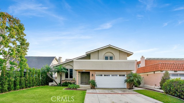 SOUTH HUNTINGTON BEACH - With generous proportions, four spacious bedrooms and large, beautifully maintained grounds, this stylishly upgraded home offers room to grow in the heart of Huntington Beach. Located near the end of a quiet cul-de-sac street, the open split-level design extends approximately 2,780 square feet and showcases a double-door entrance, vaulted ceilings, large windows and a dramatic multi-tiered staircase. Impressive entertaining is easy in a living room with custom fireplace and a formal dining room with crown molding and direct access to the backyard. Sliding-glass doors open the family room to the backyard as well, and the adjacent kitchen is embellished with granite countertops, stainless steel appliances, white cabinetry and a peninsula-style breakfast bar. As an added bonus, this inviting residence offers an extra-rare, fully finished basement complete with a fireplace. Two- and one-half baths are updated with today's popular finishes and fixtures, and the primary suite hosts a vaulted and beamed ceiling, handsome accent wall, French doors opening to an expansive balcony, a walk-in closet with custom built-ins, and an en suite bath with tiled shower and two sinks. Custom recessed lighting illuminates living spaces that are enhanced with wood and tile flooring, crown molding, a soothing color palette, ceiling fans and elegant lighting fixtures. Grounds span approximately 5,459 square feet and include a private backyard with pool. Perry Elementary School is just steps from home, and shopping centers, beautiful city parks, miles of sandy beaches, Huntington Beach's famous pier, and the vibrant Pacific City are just minutes away.